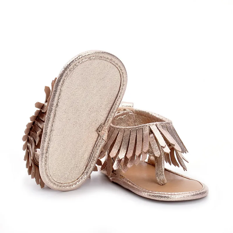 Lovely Infant Baby Girls Soft Sole Toddler Shoes Cotton Blend Tassels Non-slip Flat Sandals Moccasin Clogs 0-12M