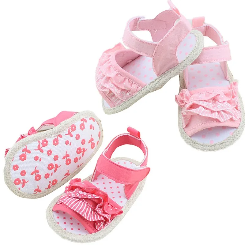 Princess Girl Summer Sandals Toddler Infant Baby Pleated Lace Soft Sole Non-slip Crib Shoes Prewalkers