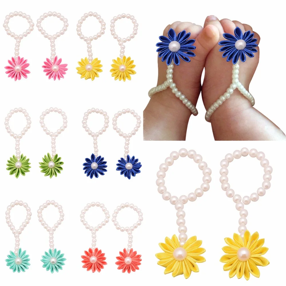 1Pair Infant Pearl Chiffon Barefoot Toddler Foot Flower Beach Sandals Feature: 100% brand new and high quality. Quantity: 1Pair Material: Plastic / Resin Size: 13cm Package Include: 1Pair Infant Pearl Chiffon Barefoot Toddler Foot Flower Beach Sandals (Without retail package)
