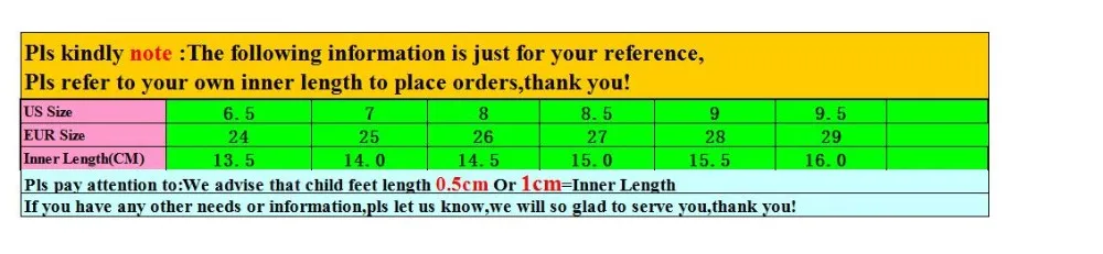 pls check it carefully before place the order NOT Genuine Leather , This is Artificial Leather, PU Shoes size = foot length+(0.5cm-1cm) if your kids foot fat , shoes size =foot length+1.5cm Size(CHN) US size Outerside Length(cm) Inside Length(cm) 20 … Read More