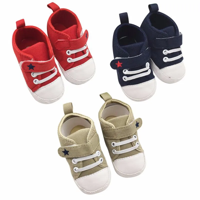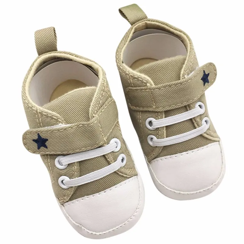 Newborn Infants Toddler Baby Laces Up Soft Soled Crib Shoes Boys Girls Velcro Cotton Sneaker First Walker Prewalker 0-12M