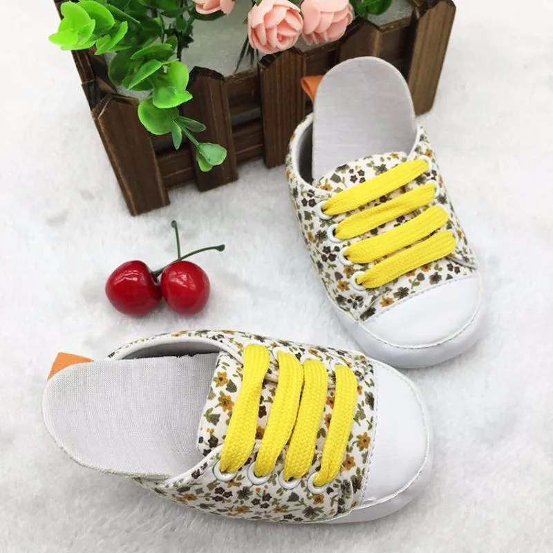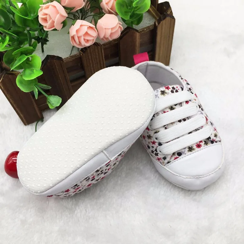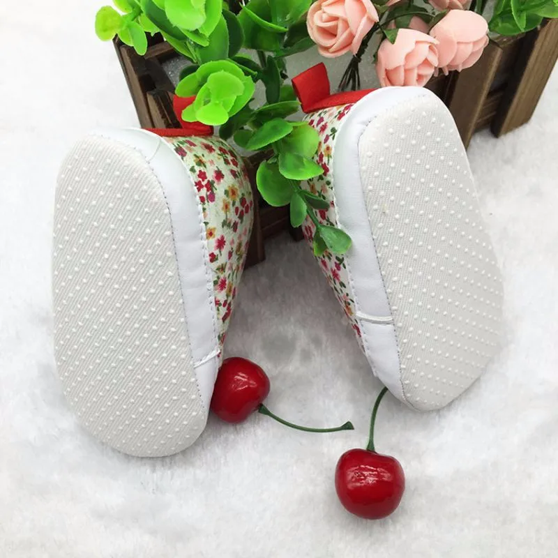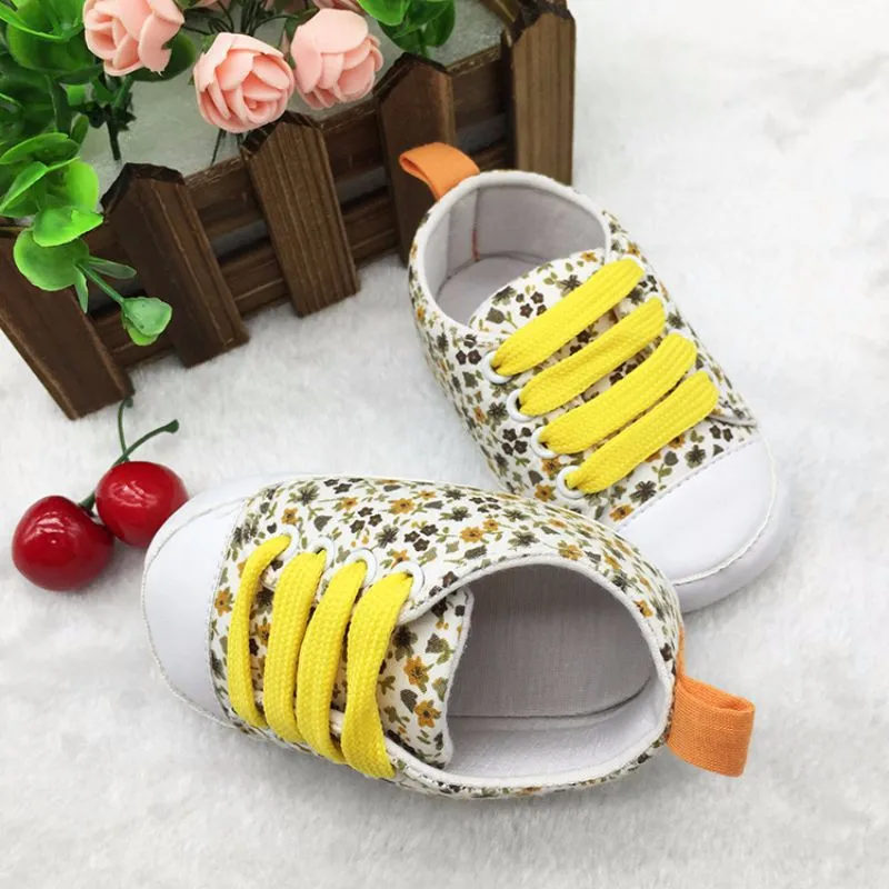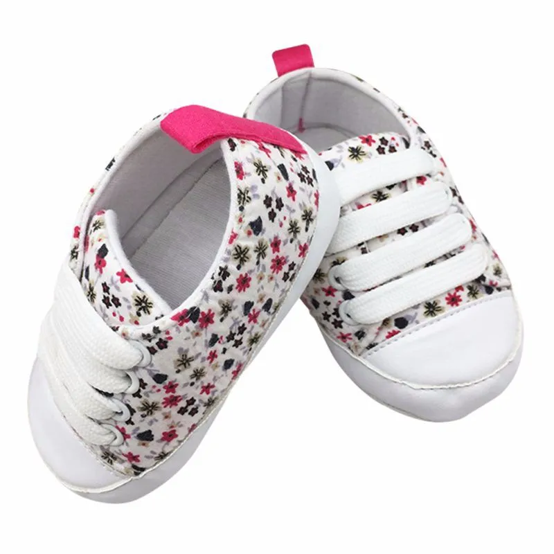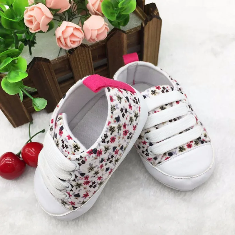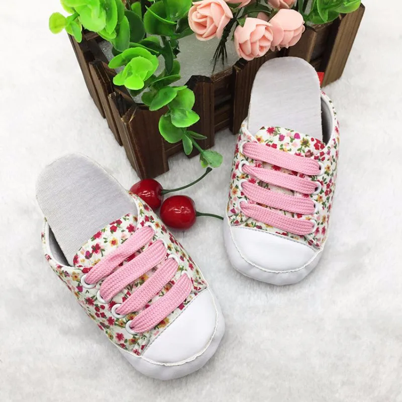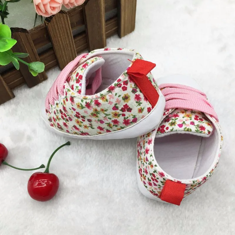 Newborn Infants Toddler Baby Floral Soft Soled Crib Shoes Girls Laces Up Cotton Shoes First Walker Prewalker 0-18M