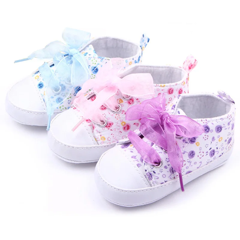 Infant Toddler Baby Girls Soft Sole Crib Casual Shoes Ribbon Shoelace Sneakers Newborn to 18M