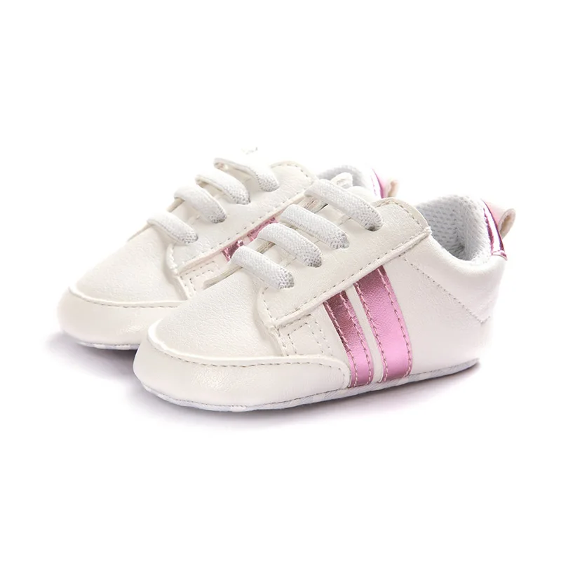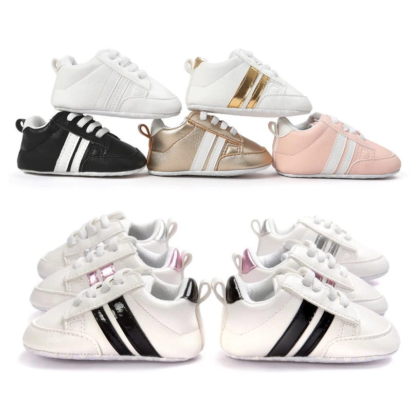 Description: 100% brand new and high quality Comfortable, Perfect Gift for your baby. Material: Faux Leather Function: Keep Warm Color: White, Black, Pink, Gold, White + Black stripes, White + Silver stripes, White + Hot pink stripes, White + Gold stripes Size Bottom Length Recommended Age: US Size 1=11cm Fit For 0-6 month US Size 2=12cm Fit For 6-12 month US Size 3=13cm Fit For 12-18 month Quantity: 1 Pair Note: 1. The Age is just for recommend,Pls check the specific Length and Width. For a little chubby feet , please mothers choose a bigger size. Thanks! 2. There is a difference of 5mm betweent the length and the inner length of the shoes. Pls read the size chart before you purchase or choose a bigger size. 3. Due to the difference between different monitors, the picture may not reflect the actual color of the item. Thank you! Package includes: 1 x 1 Pair of baby shoes