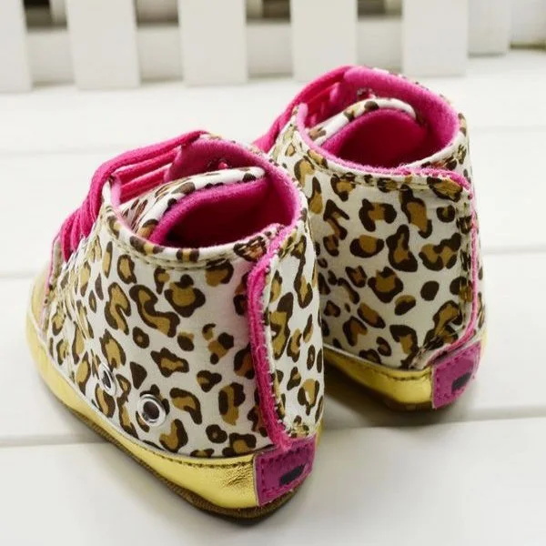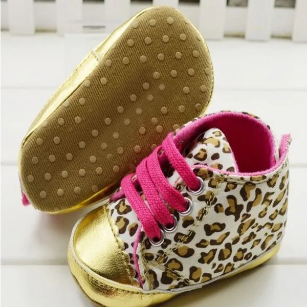 Cute Baby Girl Infant Toddler Leopard Gold Crib Shoes Walking Sneaker Size 11, 12, 13