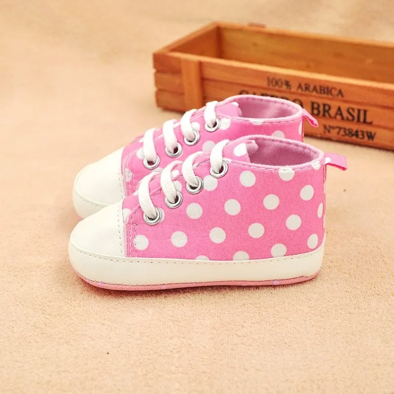 Cute Prewalker Child Baby Shoes First Walkers Sports Dots Print Anti-Slip Sneaker Born Shoes 0-18M
