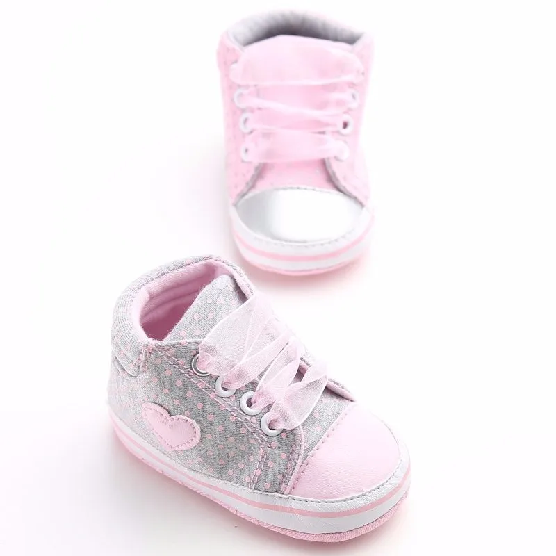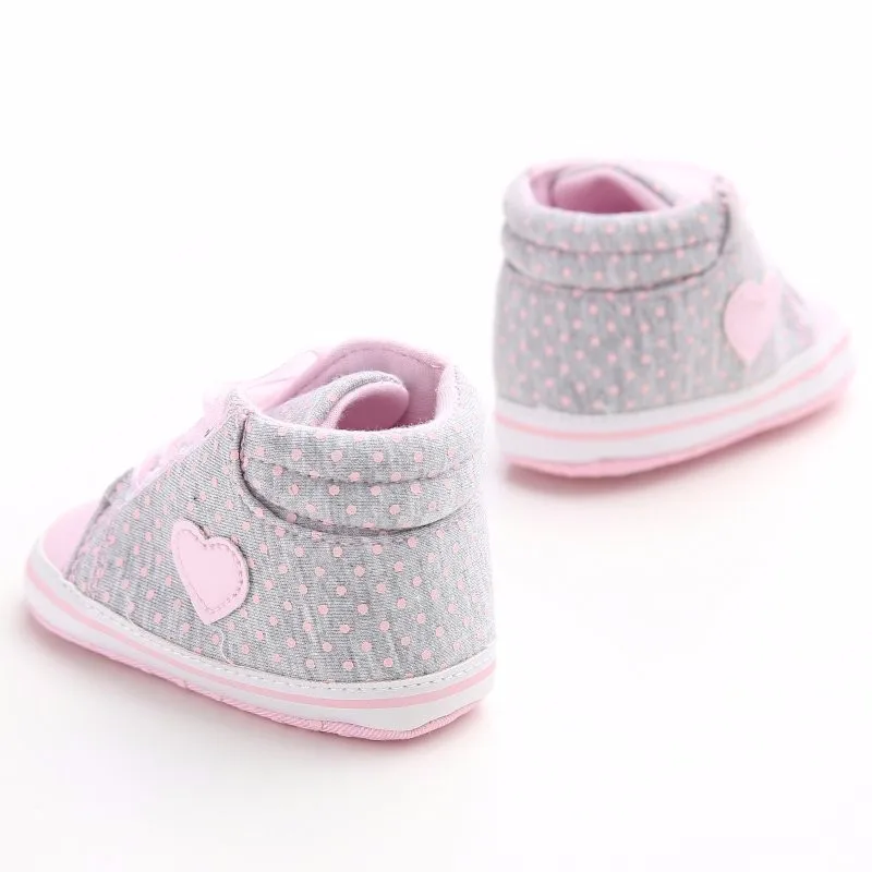 Infant Newborn Baby Girls Polka Dots Heart Autumn Lace-Up First Walkers Sneakers Shoes Toddler Classic Casual Shoes