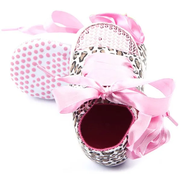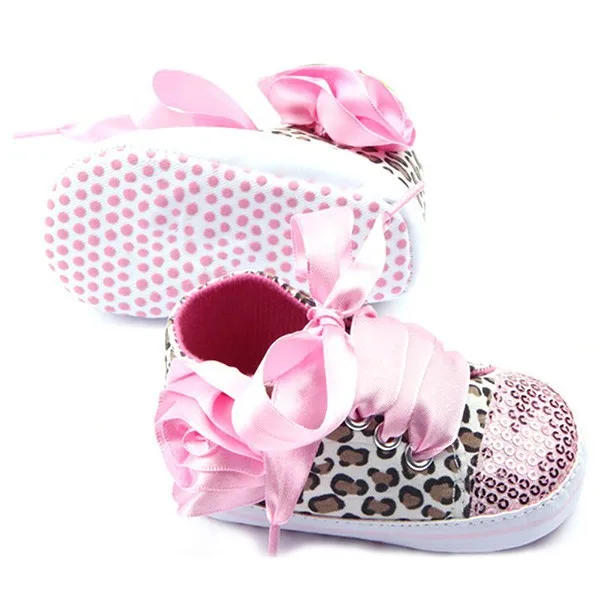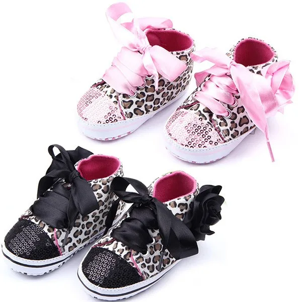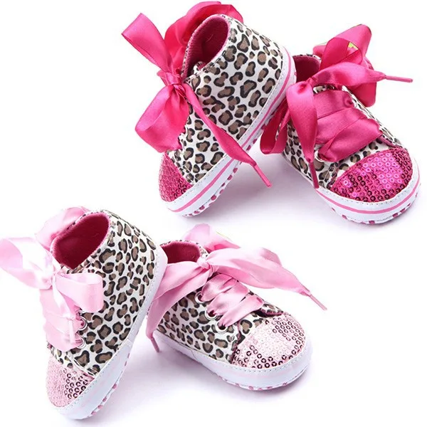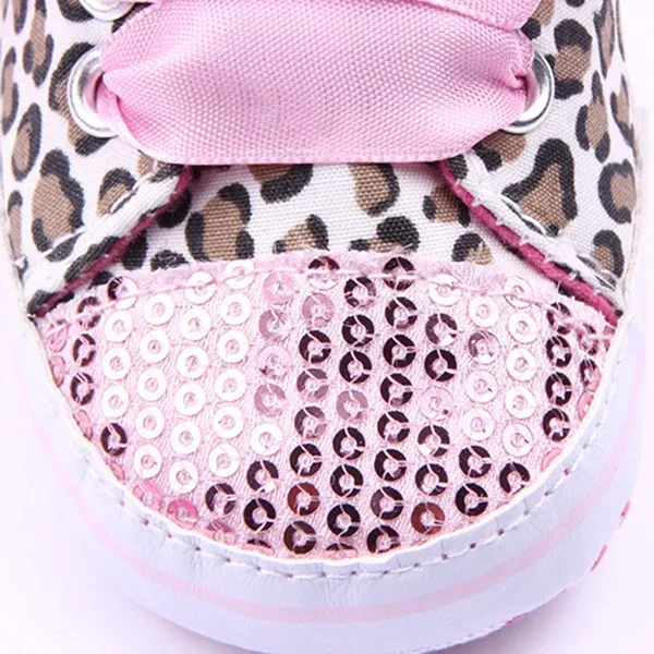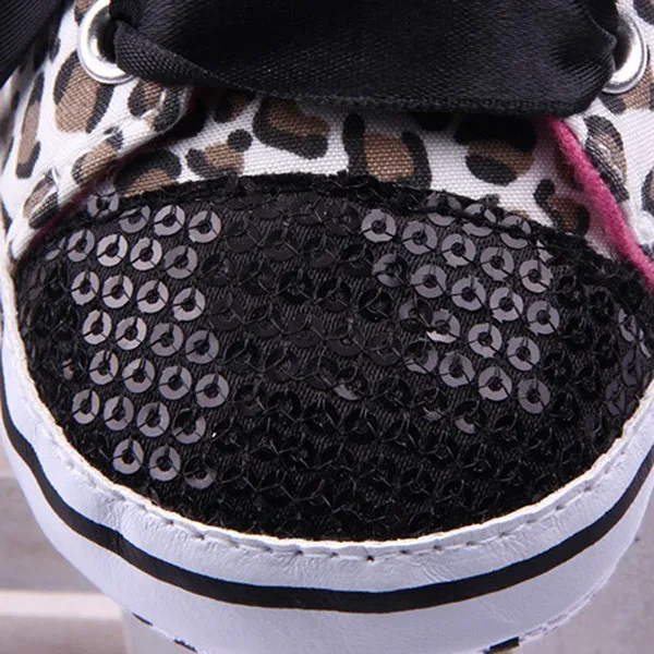 Infant Kid Girl Leopard Bling Shoelace Shoes Baby Toddler Soft Sole Sneaker Crib Shoes
