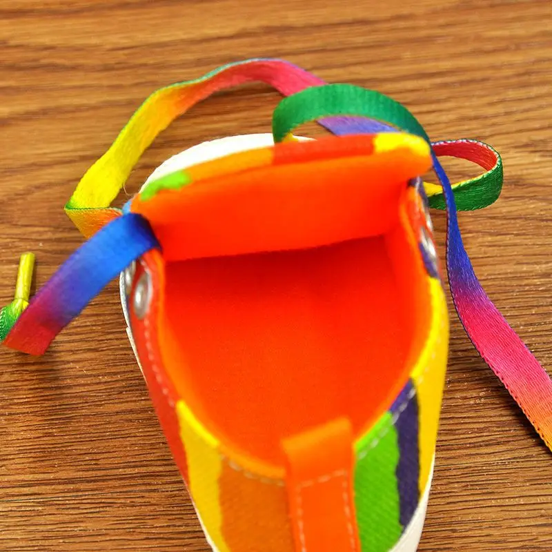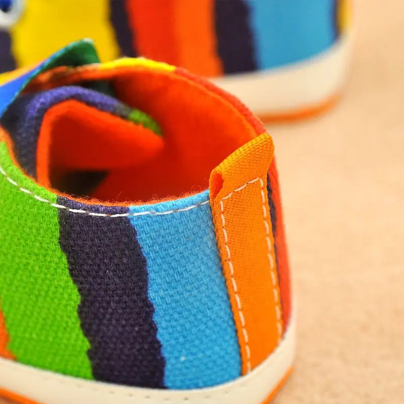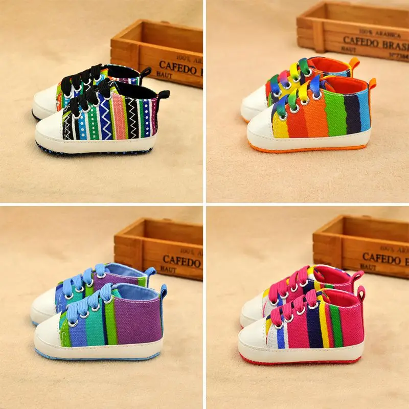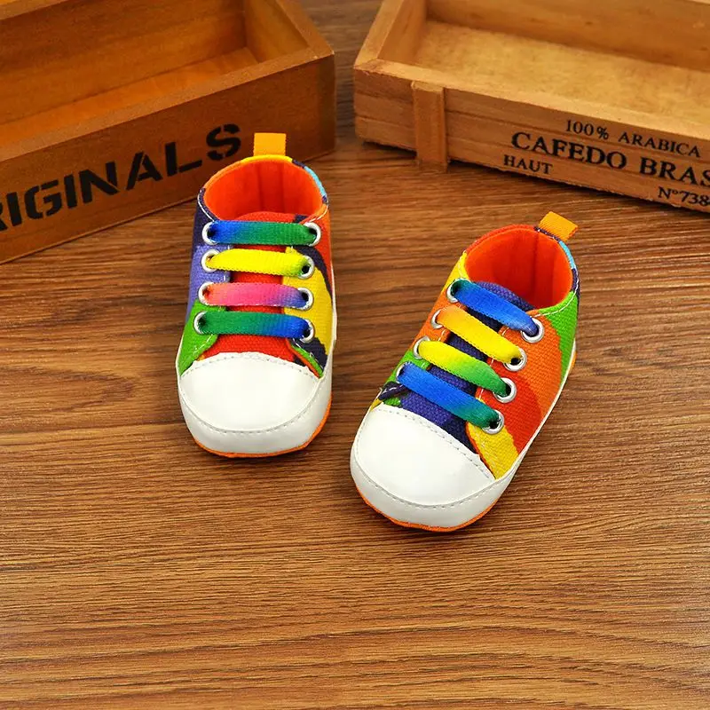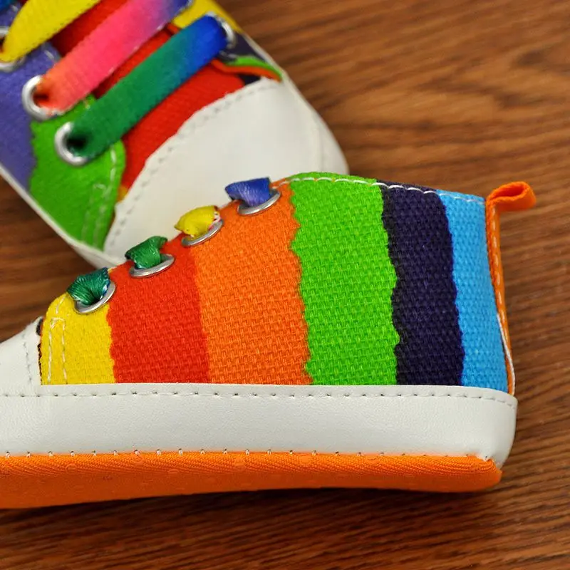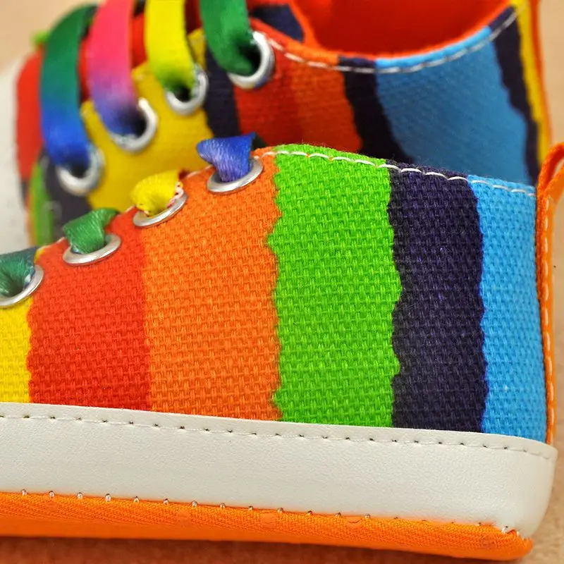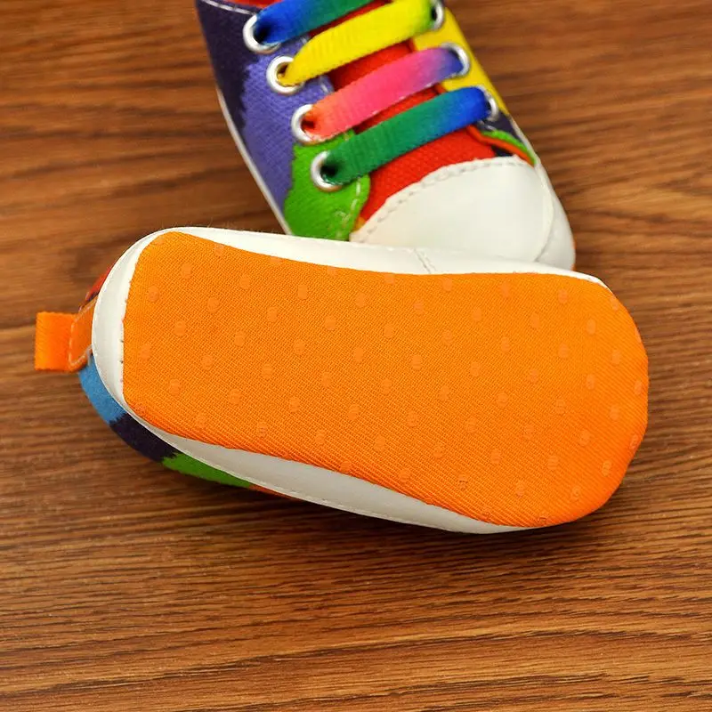 0-18M Infants Baby Boy Girl Soft Sole Crib Shoes Casual Lace Prewalkers Sneakers Rainbow Color