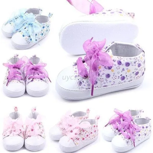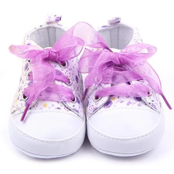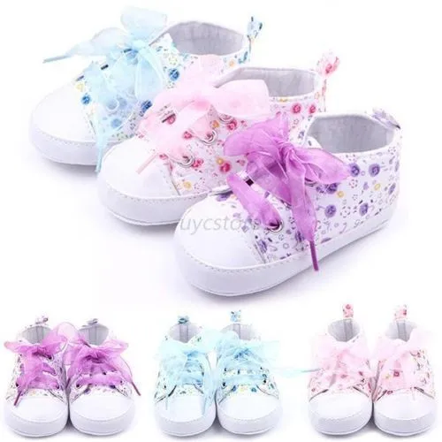 Infant Toddler Baby Girls Soft Sole Crib Casual Shoes Ribbon Shoelace Sneakers Newborn to 18M