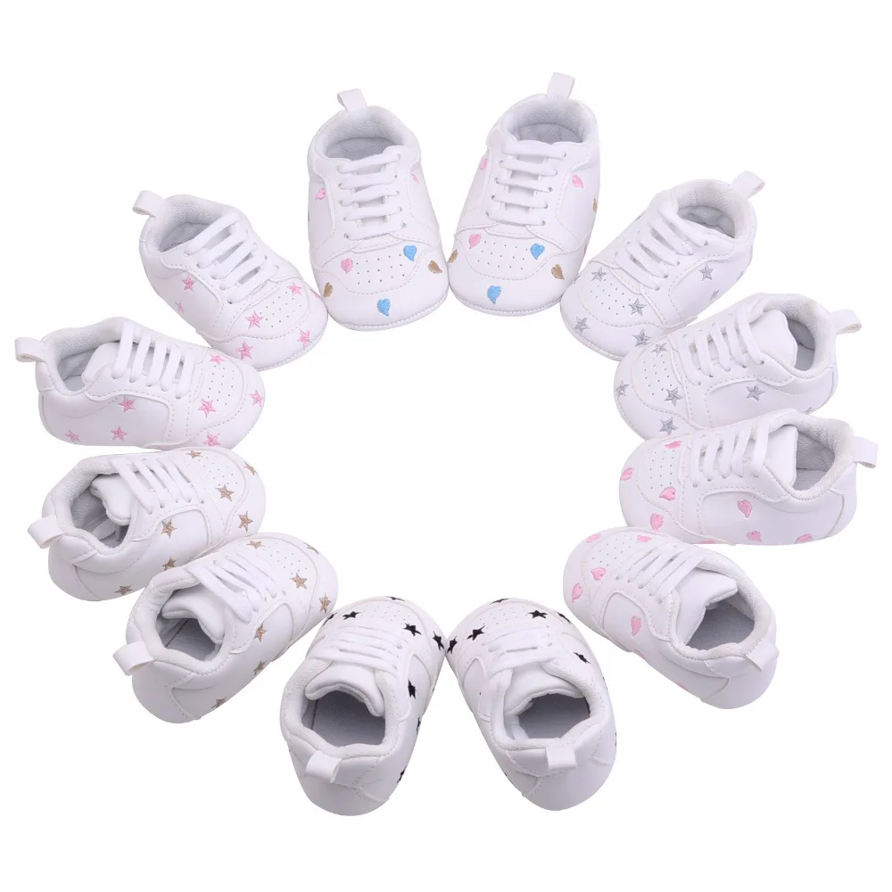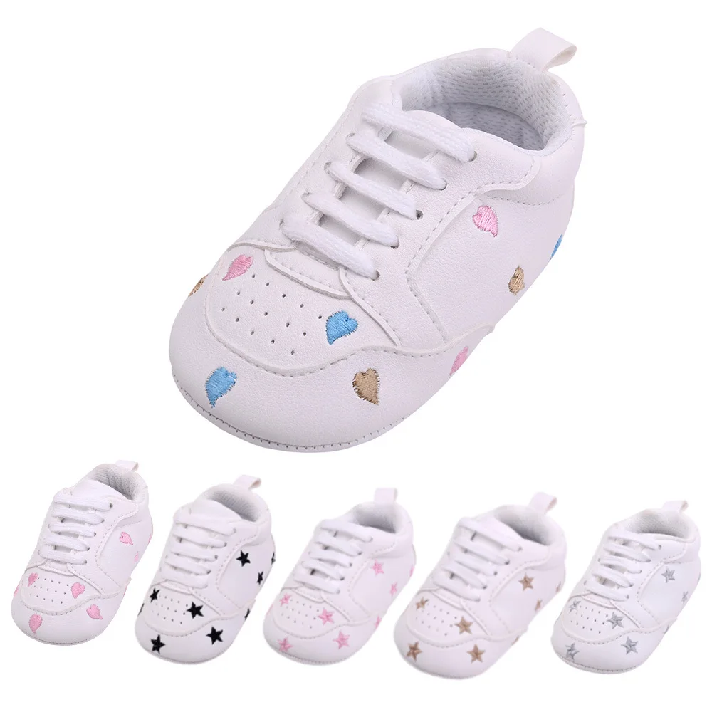 RUBU 2017 Baby Shoes Newborn Boys Girls Heart Star Pattern First Walkers Kids Toddlers Lace Up PU Sneakers 0-18 Months Gift