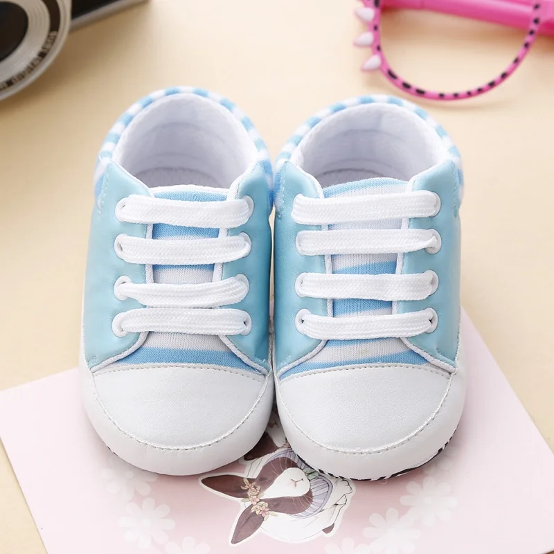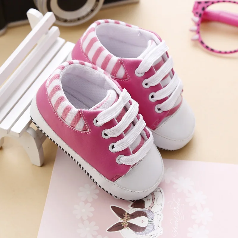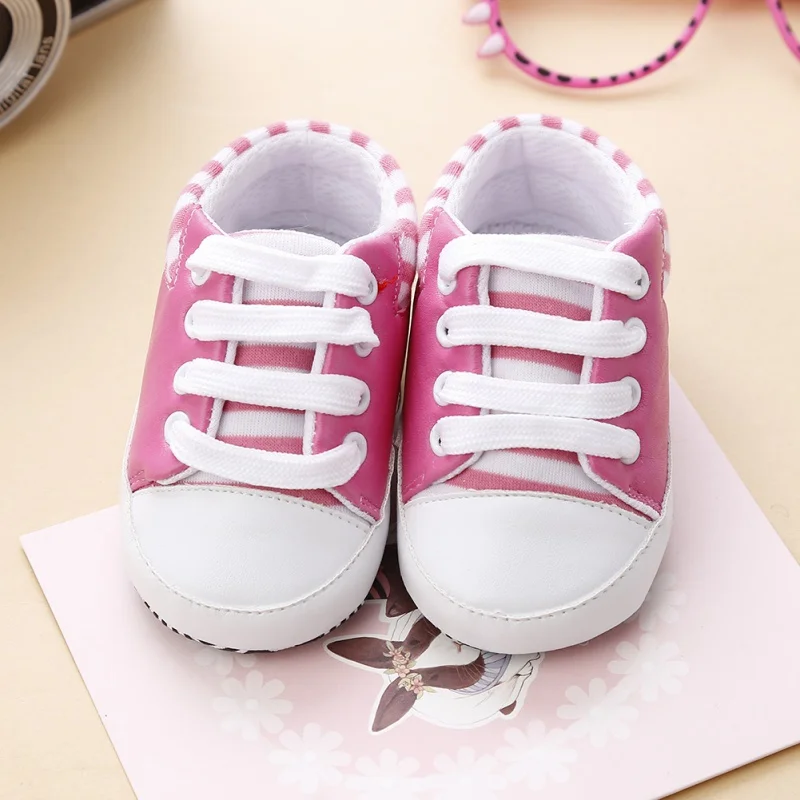 Spring Cute New Infant Toddler Baby PU Striped Sneakers Boys Girls Soft Sole Crib Non-slip Shoes 0-18M