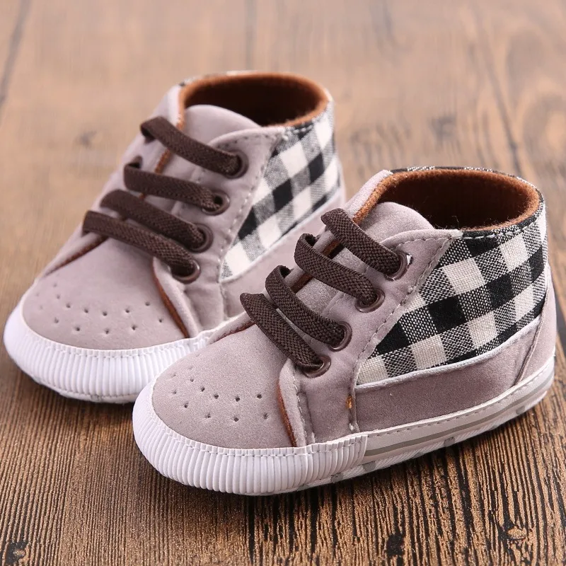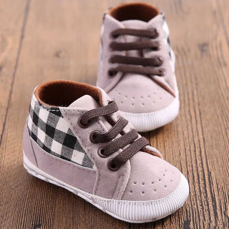 100% brand new with high quality Very beautiful fashionable and Casual Material: PU Leather Style: Crib Shoes Color: Gray Pattern: Plaid Size: S/M/L (Fit For 0-18 Months Baby) Item Includes: 1 Pair Baby Shoes Size Reference: 1inch=2.54cm Below Age is for your reference ONLY, please choose the size by Sole Length, thank you. Size Sole Length Sole Width Recommend for Kid 1 11cm/4.33″ 5.6cm/2.20″ 0-6 Months 2 12cm/4.75″ 5.8cm/2.28″ 6-12 Months 3 13cm/5.12″ 6.2cm/2.44″ 12-18 Months