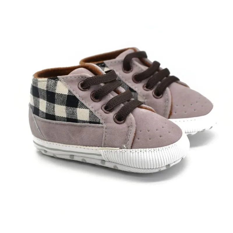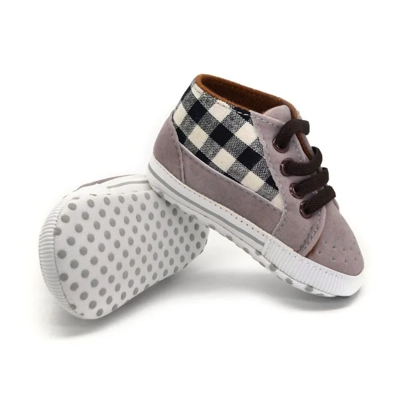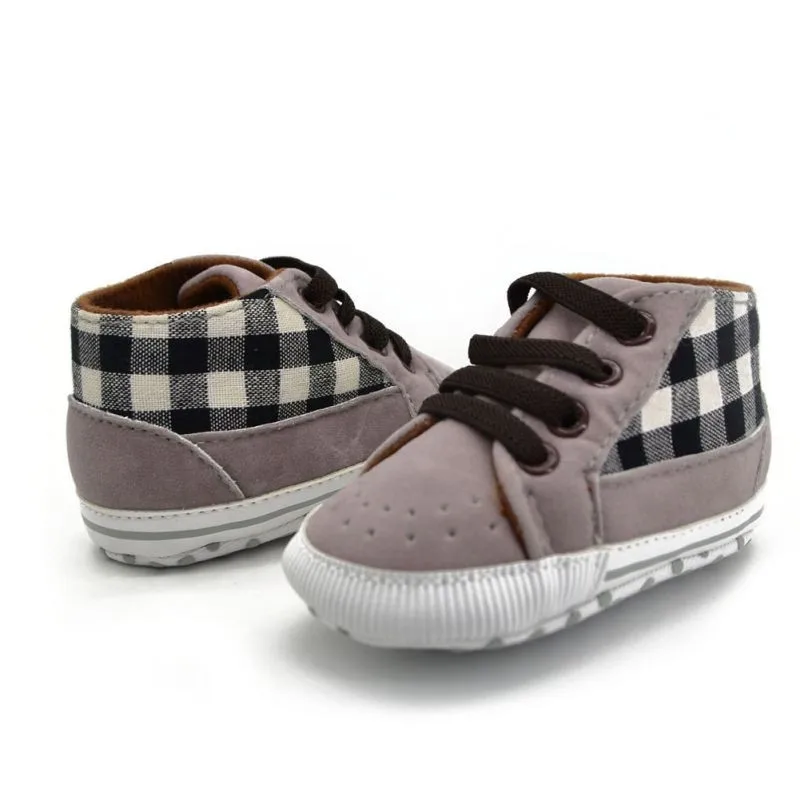 0-18 Months Toddler Infant Baby Boys Shoes Lace-Up Casual Sneaker PU Leather Plaid Soft Sole Crib Shoes Prewalker