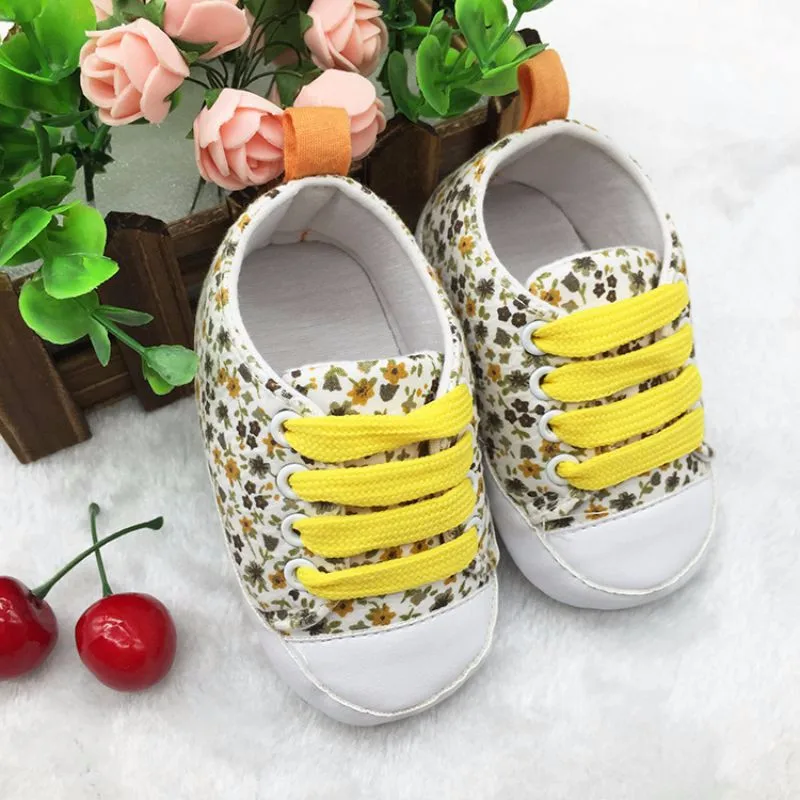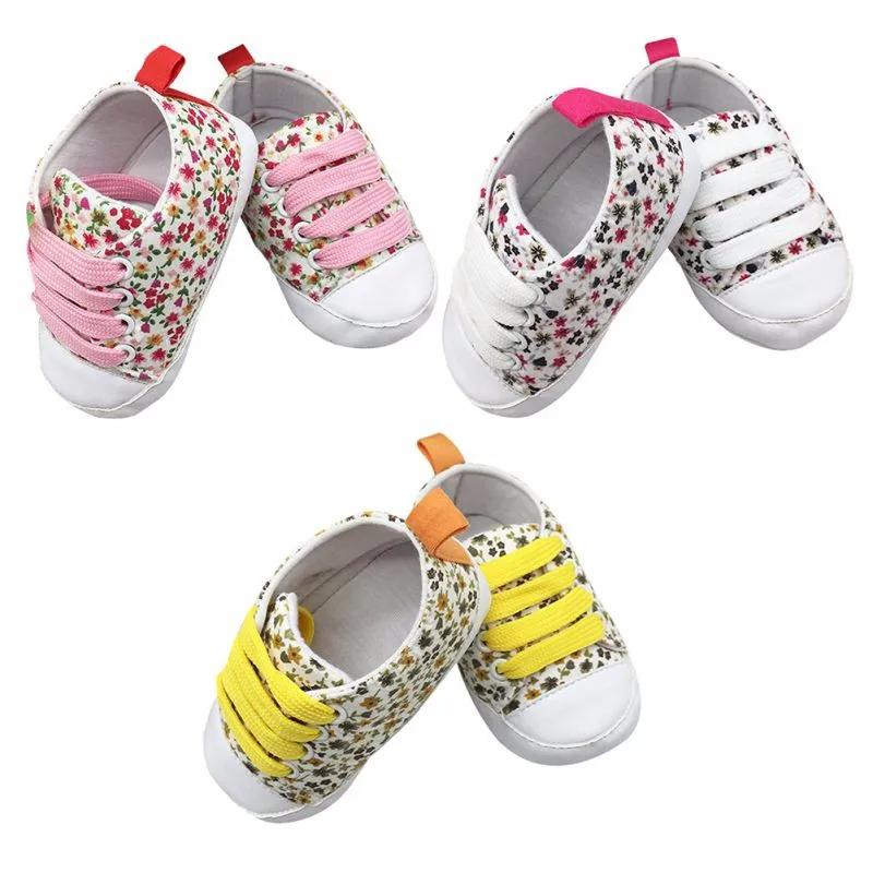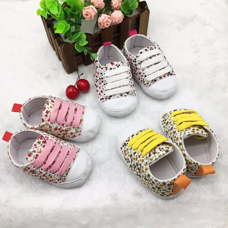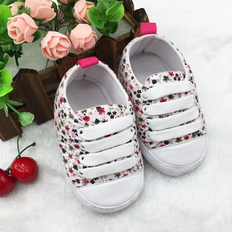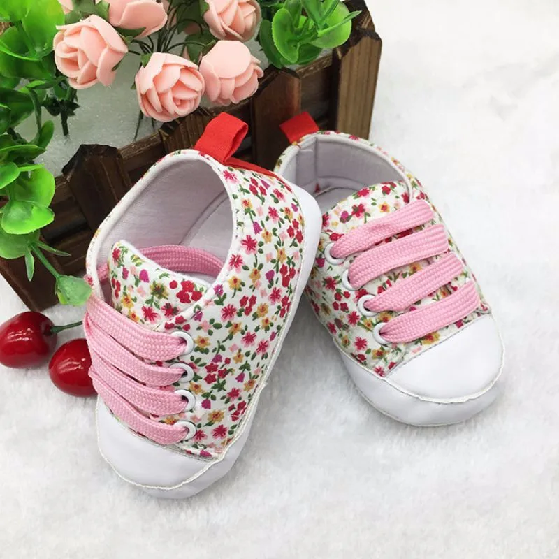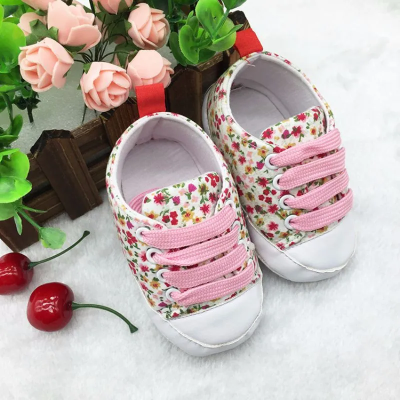 Newborn Infants Toddler Baby Floral Soft Soled Crib Shoes Girls Laces Up Cotton Shoes First Walker Prewalker 0-18M