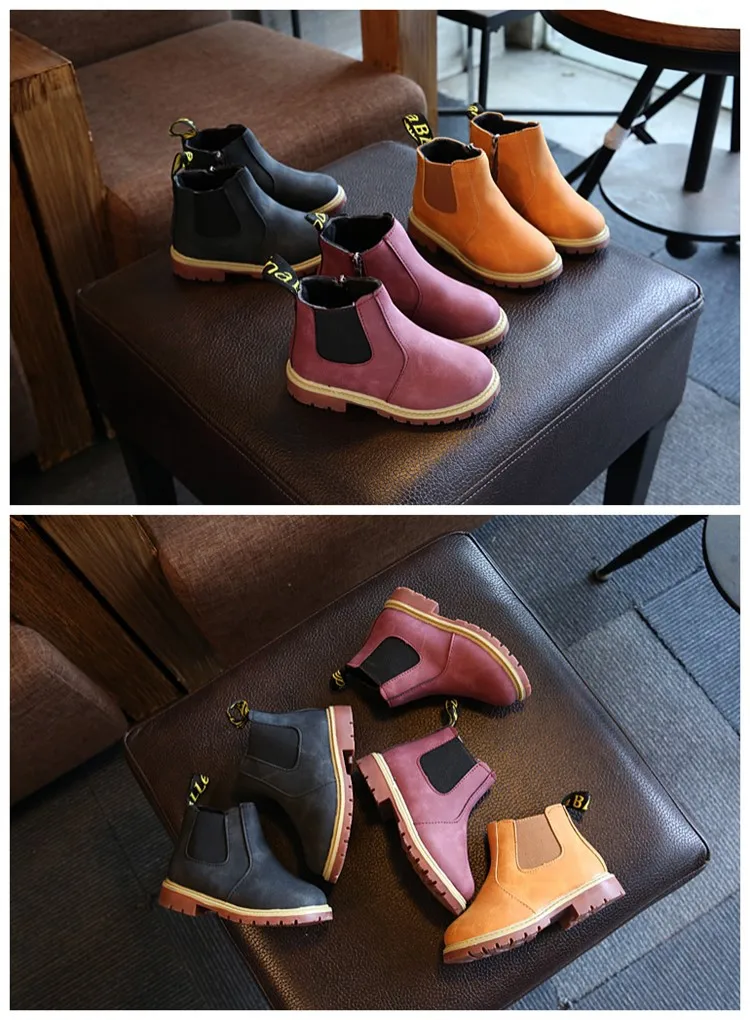 2016 Autumn winter New handmade comfortable girls boots leather Martin boys boots fashion kids boots High-quality children shoes