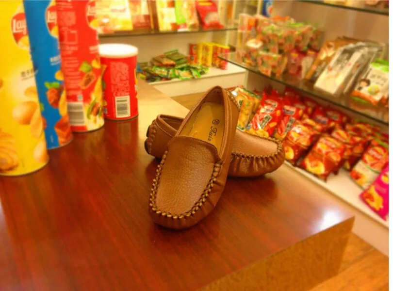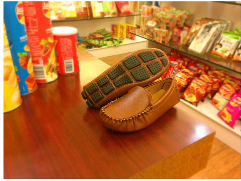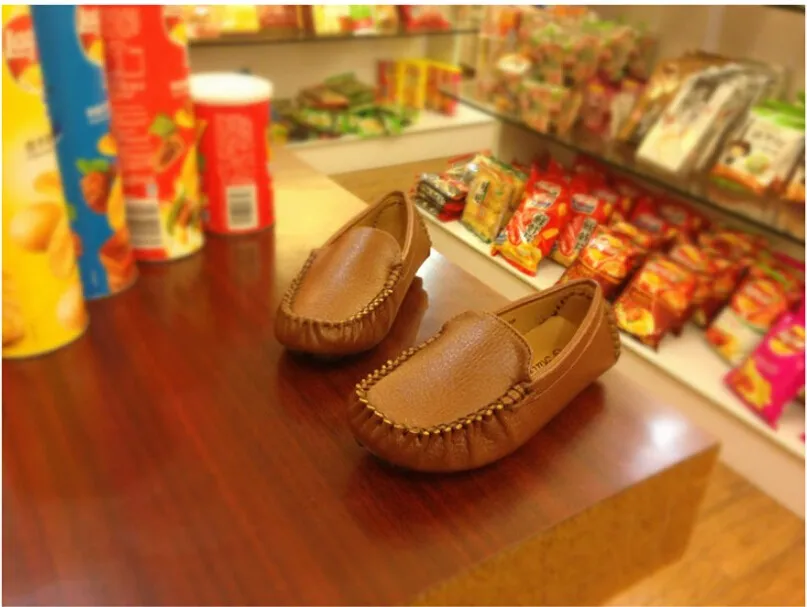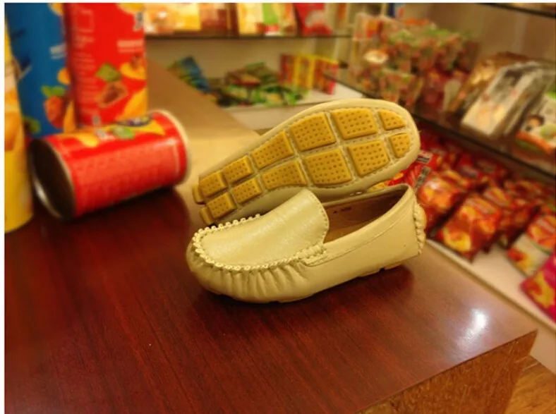 2016 Male Child Candy Color Loafers Children Shoes Leather Kids Shoes Boys Sneaker Apricot Brown Black Size 21-36