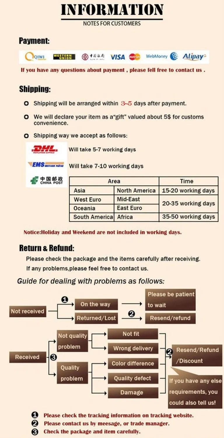 1.If you are satisfied with our products and service, please take a minute to leave us a positive (5 stars) feedback. We will really appreciate that.