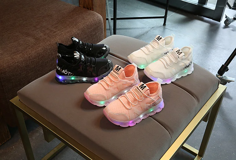 2017 Fashion Kids LED Glowing Sneakers Toddler Spring Breathable Slip-On Children Sneaker Colorful Boys girls Sports Shoes light Feature: Color:Black,White,Pink Size:22~ 37 Length:13.3~22 cm Dear friends: Because all children shoes size is difference,When you order the children’s shoes,you should according to Our size and internal length. According to the Insole length.(Insole length=Foot length +1cm) The US size is Not Standard ,Just convenient for you to do order. The comfortable length is the foot length add about 1cm. And Because of the long time delivery time by China Post Air Mail and child will grow up fast please choose more bigger size shoes for your child. Please choose the right size. All shoes will be shipped with bubble bags,no boxes !!!