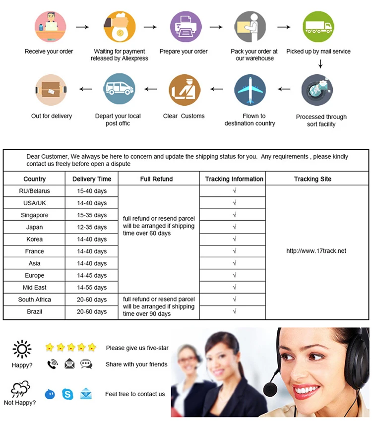 • The delivery speed only for reference, sometimes will be delayed by holidays, festivals, bad weather, customs, Etc.