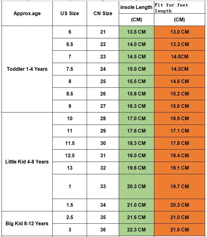 2. Please allow insole length 0.5 centimeters error due to manual measurement in the size chart. 3. The number marked in the shoes’ sole is Cina size, not EU size!!! 4. All the shoes will be shiped without packing box, we will pack them very well by bubble bags!!! 5. Pls measure your kid’ foot length as below. If her/his foot length is 11.5cm, you can add 0.5-1 cm. That’s to say, choose insole length 12/12.5. Thank you for your support Purchase Note: 1.Size standards that we store is different,select size need to look at the size of the charts. 2.If you do not know how to choose the size,please leave a message to tell us,we will promptly get back to you.