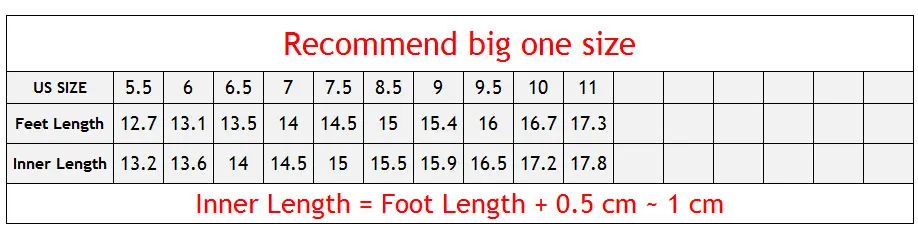 USD 12.59-15.50/pair USD 10.69-16.05/pair USD 15.61-17.74/pair USD 15.21-16.53/pair USD 12.22-14.93/pair USD 16.18-18.92/pair USD 15.66-17.91/pair USD 14.04-16.44/pair Please notice that the size above is inner length. And there maybe 0-1cm error due to the measure by hand. The size you need=length … Read More