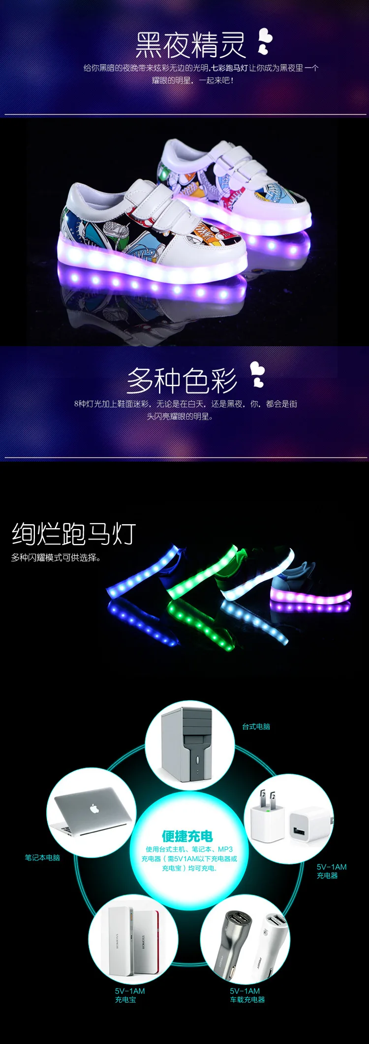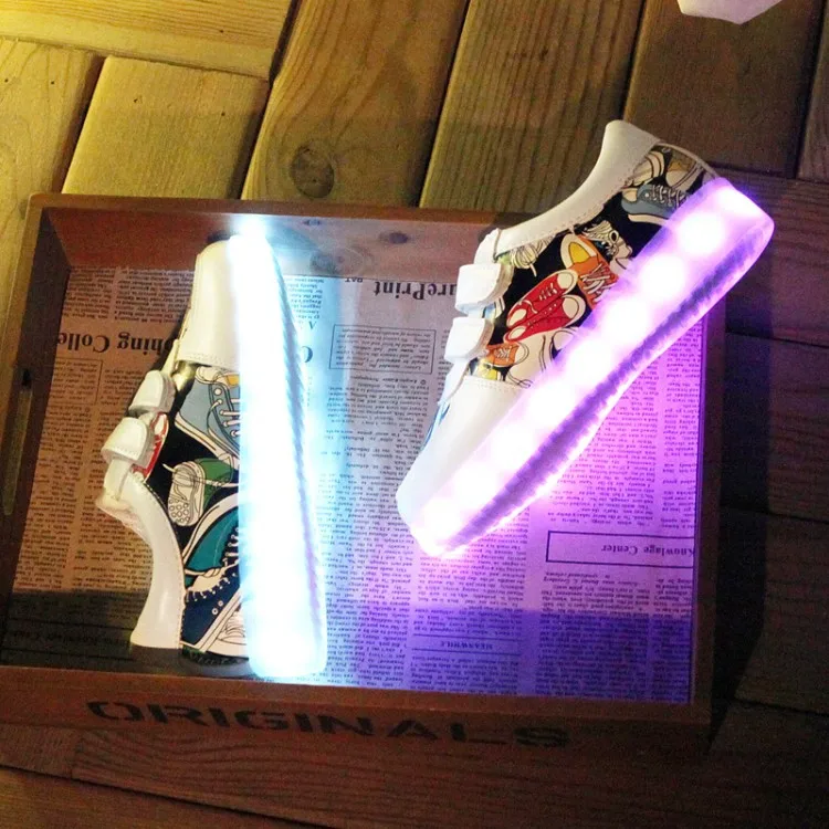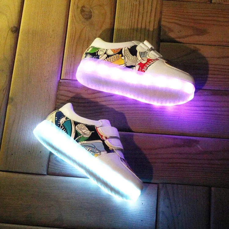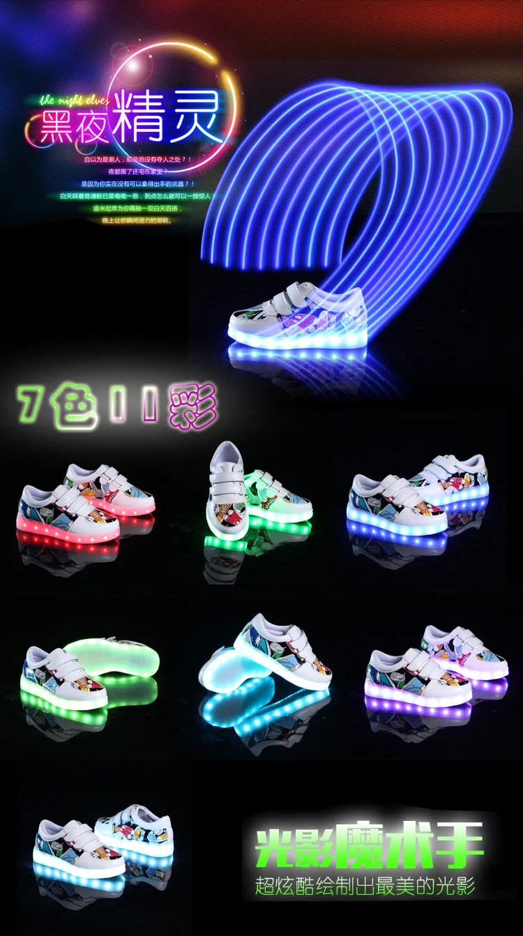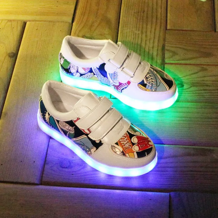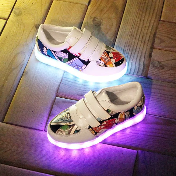 Children LED Shoes 2017 New Spring USB Rechargeable Printed Kids Luminous Sneakers Boys Sports Shoes for Girls Shoe with light