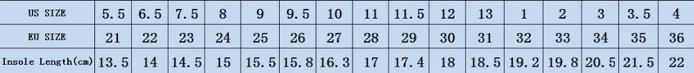 US size only For buyers to purchase use . The buyers buy the right shoes according length of child’s feet, The size you need=length of your child’s feet+0.8~1.5cm Please choose the bigger size for children,the children’s feet grow very fast, and you need some time to receive the shoes The shoes comes without box