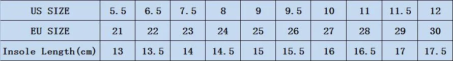 US size only For buyers to purchase use . The buyers buy the right shoes according length of child’s feet, The size you need=length of your child’s feet+0.5~1.2cm Please choose the bigger size for children,the children’s feet grow very fast, and you need some time to receive the shoes