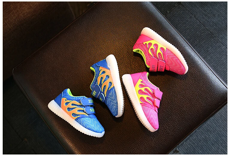 Children Shoes With Light Boys Led Growing Sneakers 2017 New Spring Print Fashion Sport Girls Shoes Lighting Kids Shoes EU 21-31