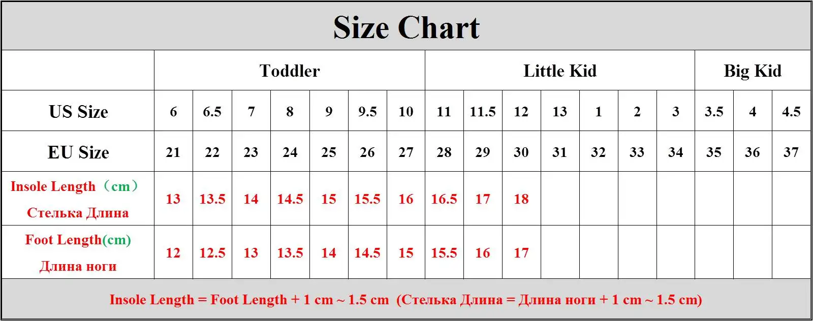 US size 6.5=EU size 22=Insole Length 13.5cm