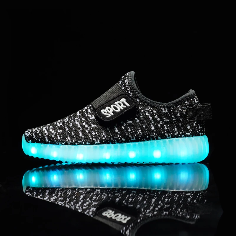 DJSUNSUNNYMIX Children Shoes With Light Boys And Girls Casual LED Shoes Kids LED Light Up USB 7 Colors Kids air mesh Shoes 25-37