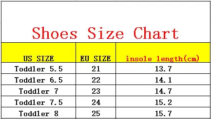Because all children shoes size is difference,When you order the children’s shoes,you should according to Our size and internal length.