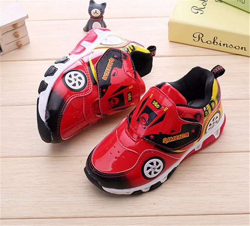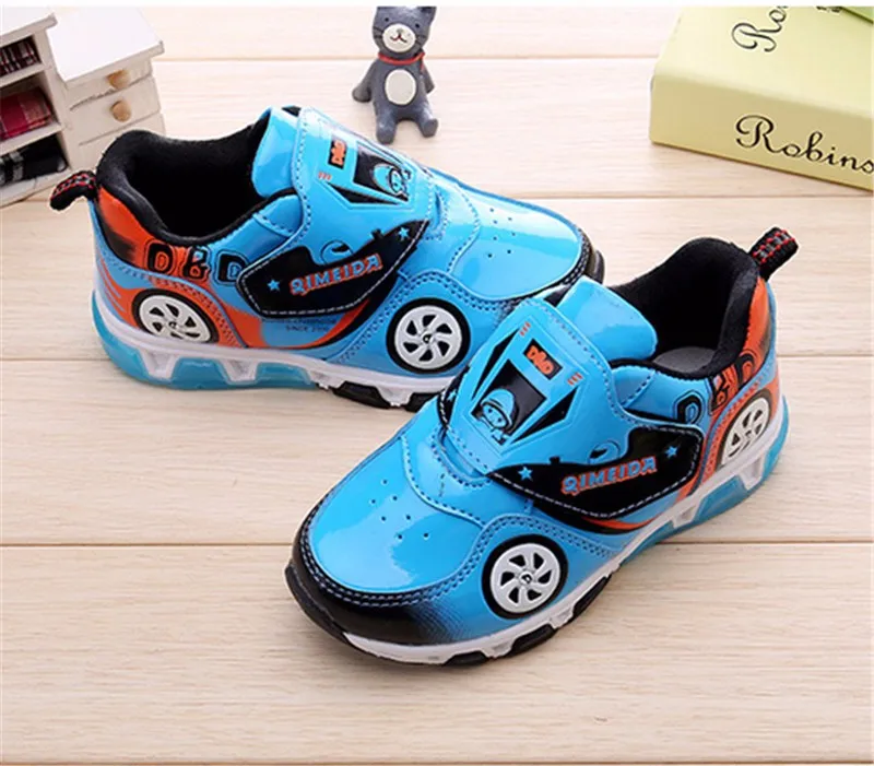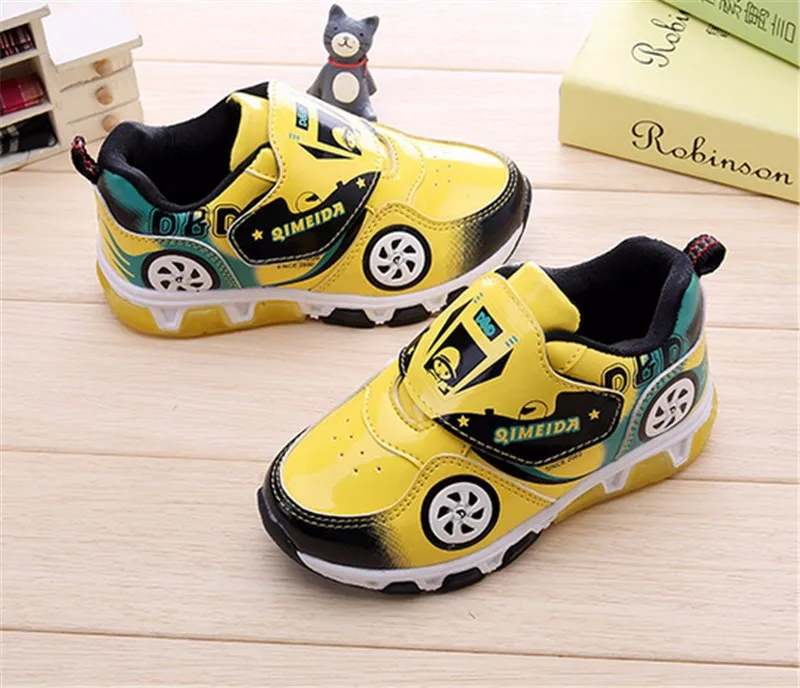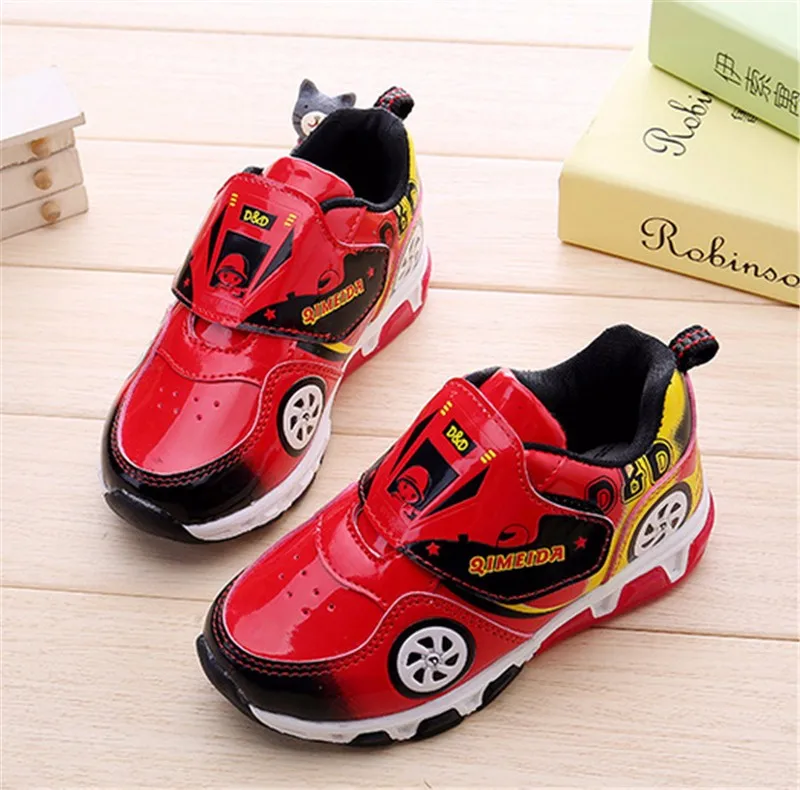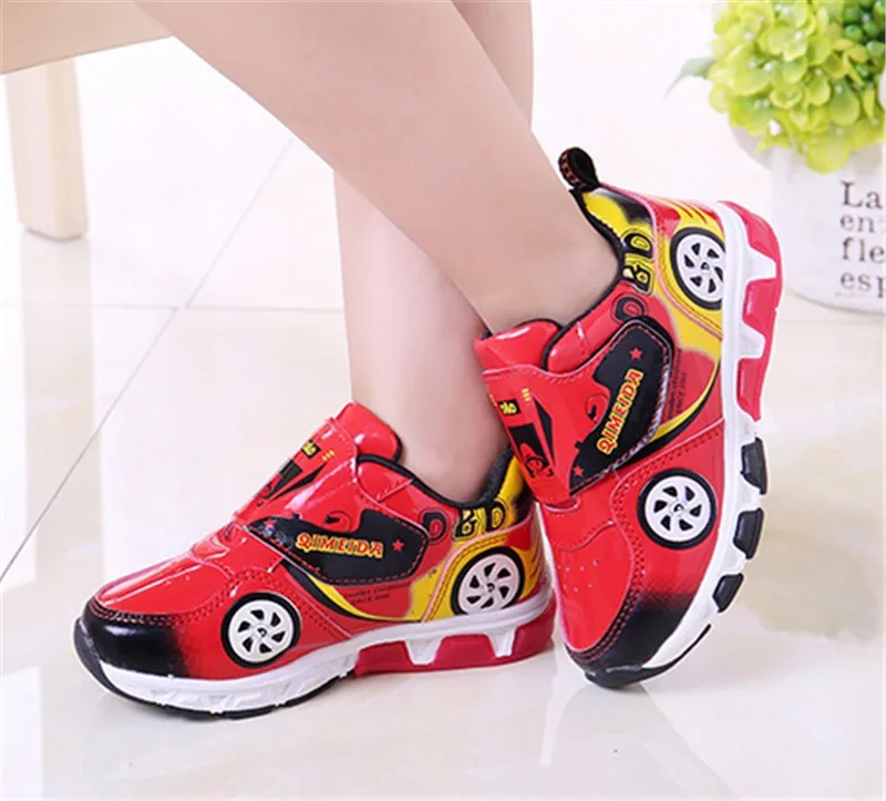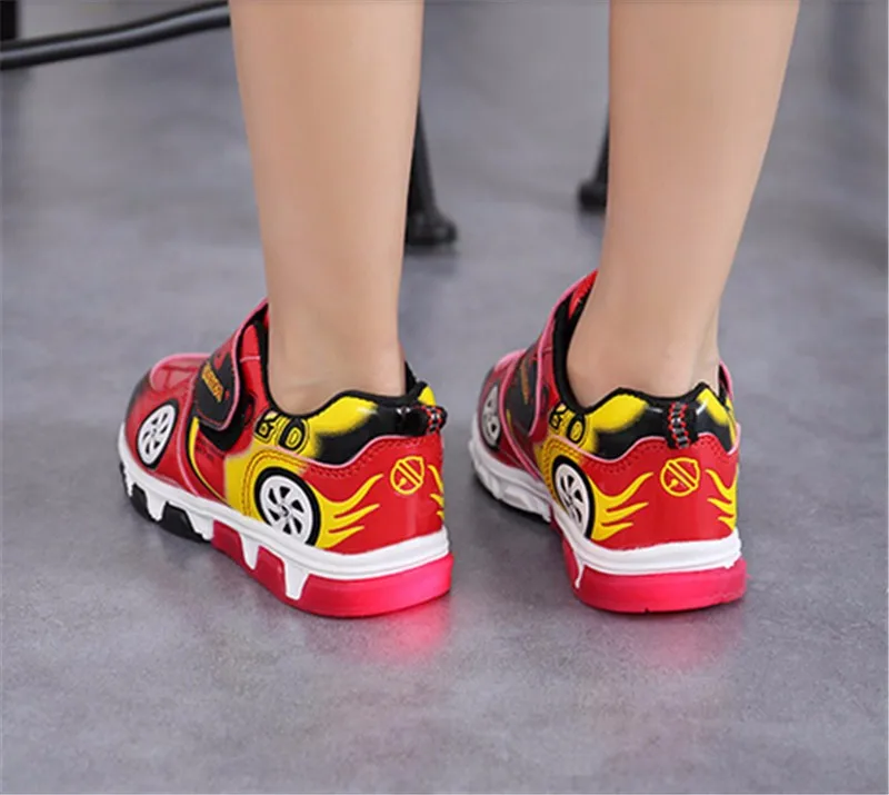 HOT Fashion Kids Sneakers Boys Cartoon Car Children Shoes With Light Up Toddler Boys Shoes Size 23-32