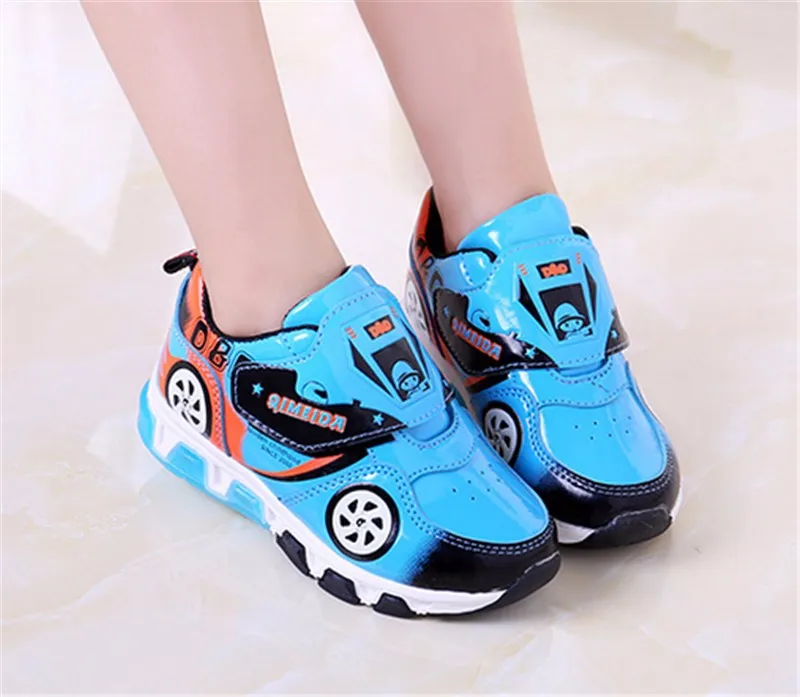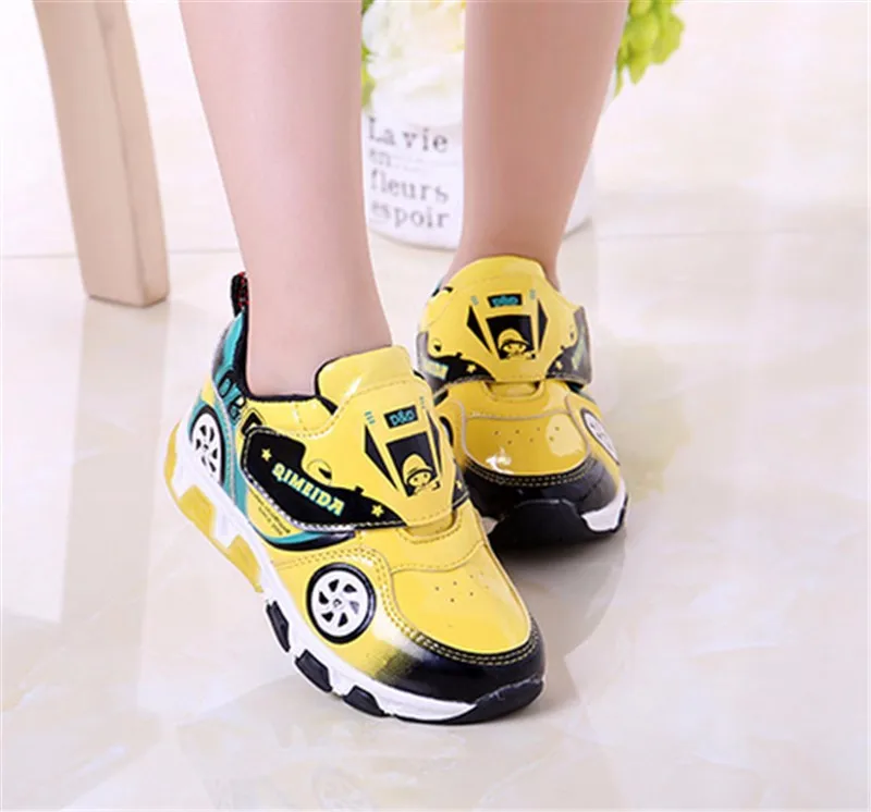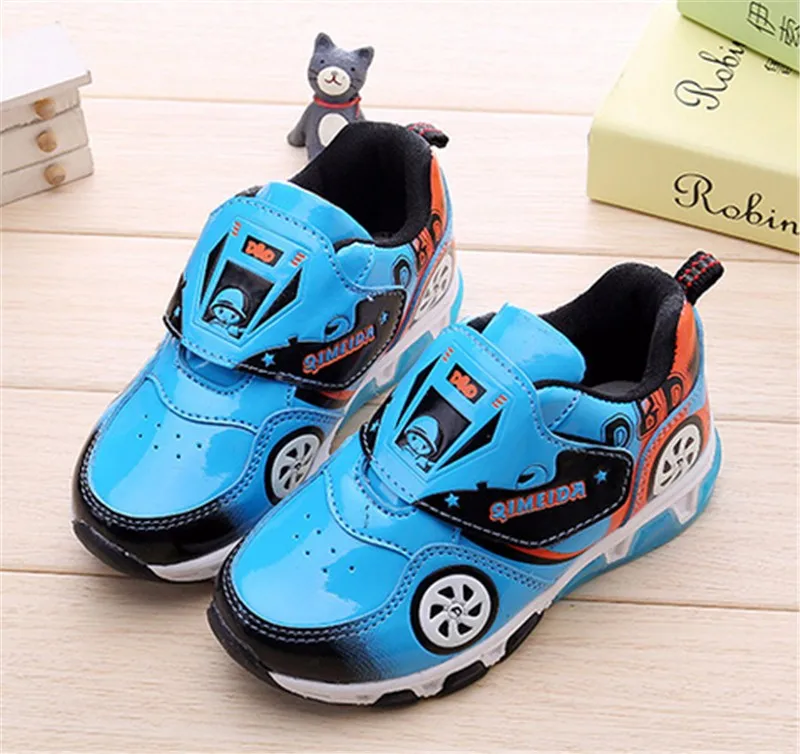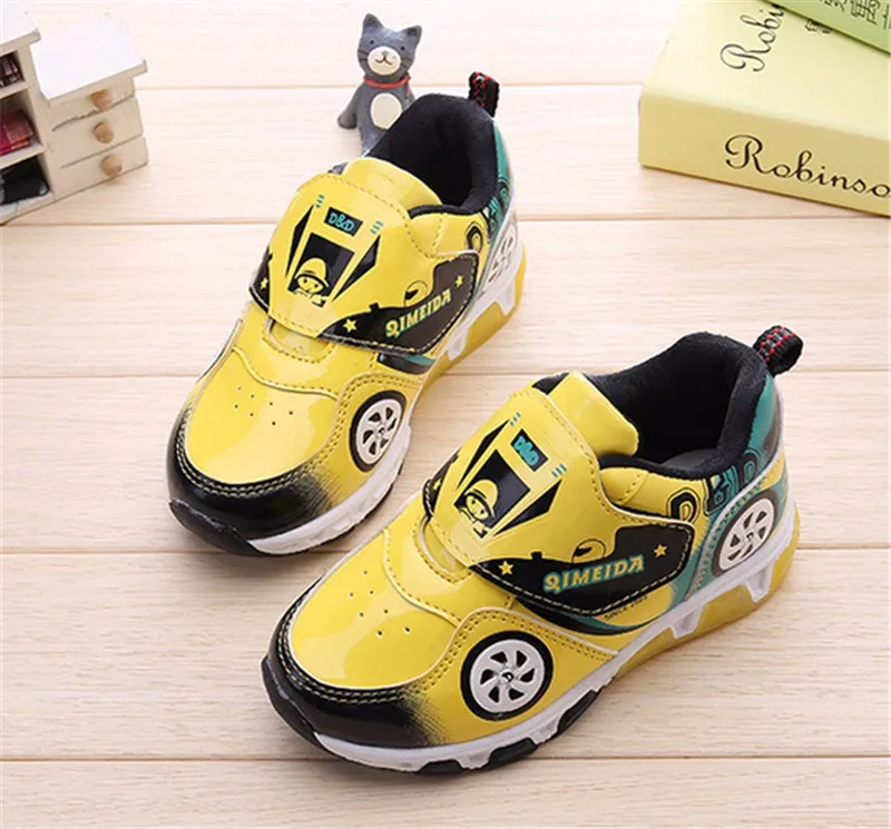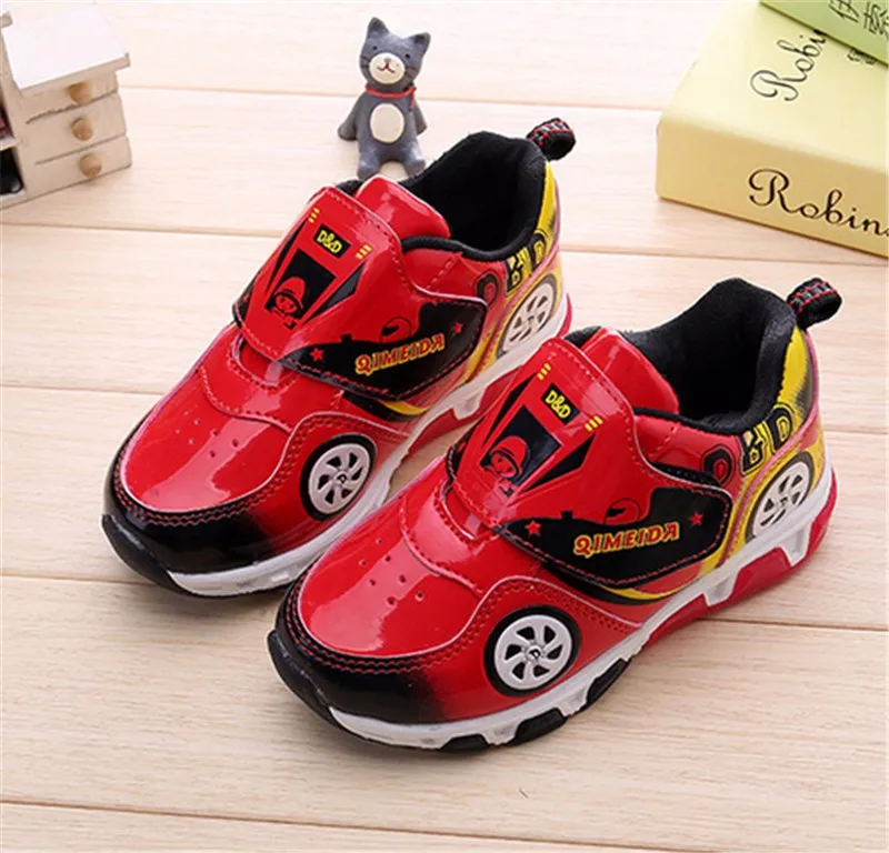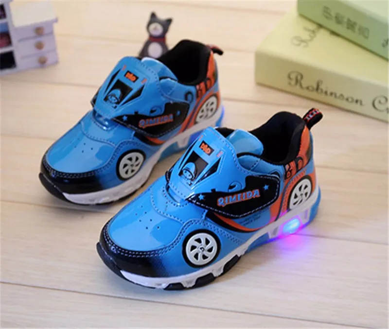 HOT Fashion Kids Sneakers Boys Cartoon Car Children Shoes With Light Up Toddler Boys Shoes Size 23-32