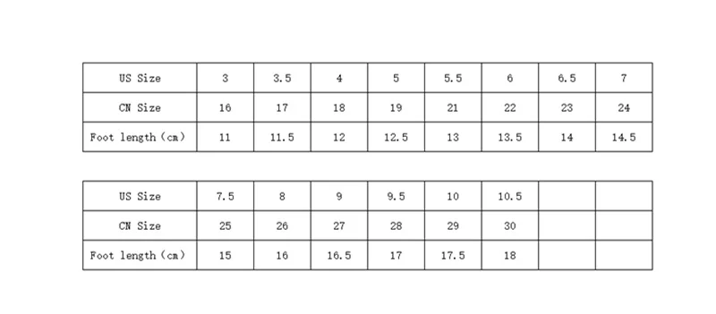 The US size is not the shoes of the standard size. US size only For buyers to purchase use . The buyers buy the right shoes according length of child’s feet, The size you need=length of your child’s feet+0.5-1CM Please choose the bigger size for the The shoes comes without box