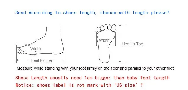 Dear friendsWe are mainly doing baby and kids shoes business, retail and wholesale. If you need any more information ,please feel free to contact us! This design for 0-18 month baby us size 4 = 4-5 = euro21-22 = 14cm us size 6 = 6-7 = euro23-24 = 15cm us size 8 = 8-9 = euro25-26 = 17cm us size 10 = 10-11 = euro27-28 = 18.5cm
