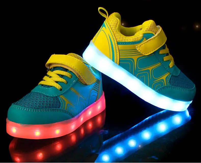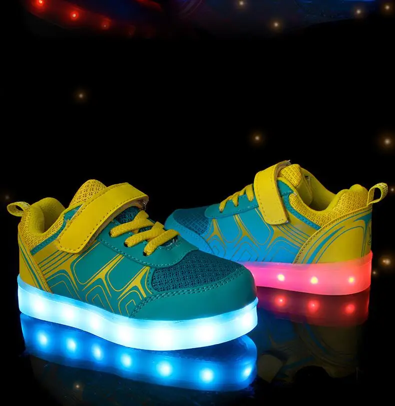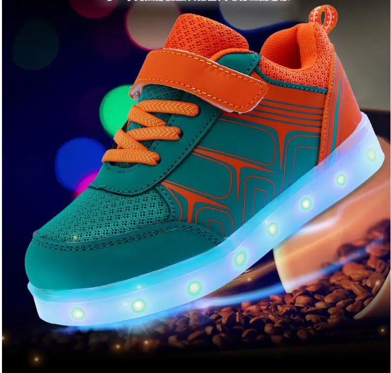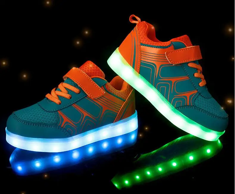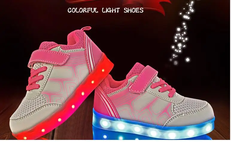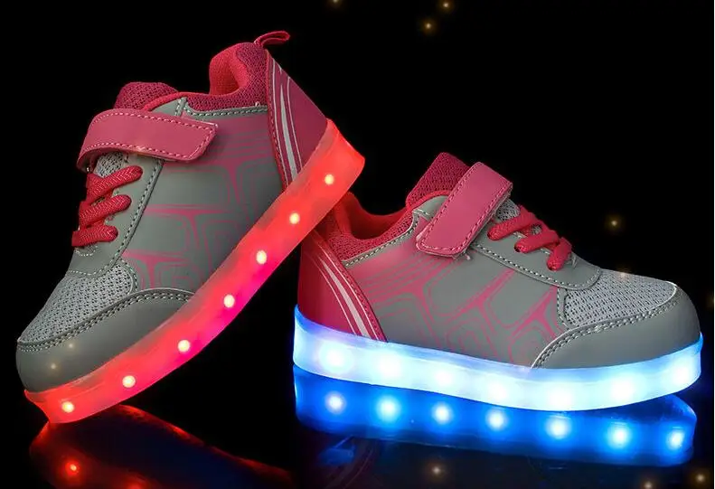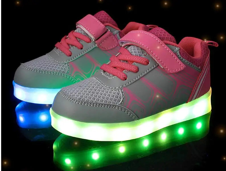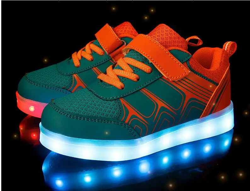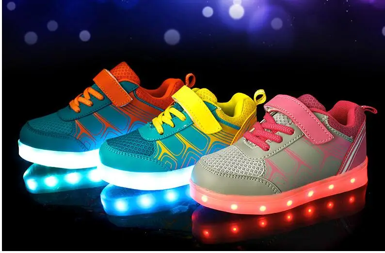 Kids Luminous Sneakers New Spring Autumn Breathable Sports Shoes Boys Girls USB Charger Led Light Shoes for children size 25~37