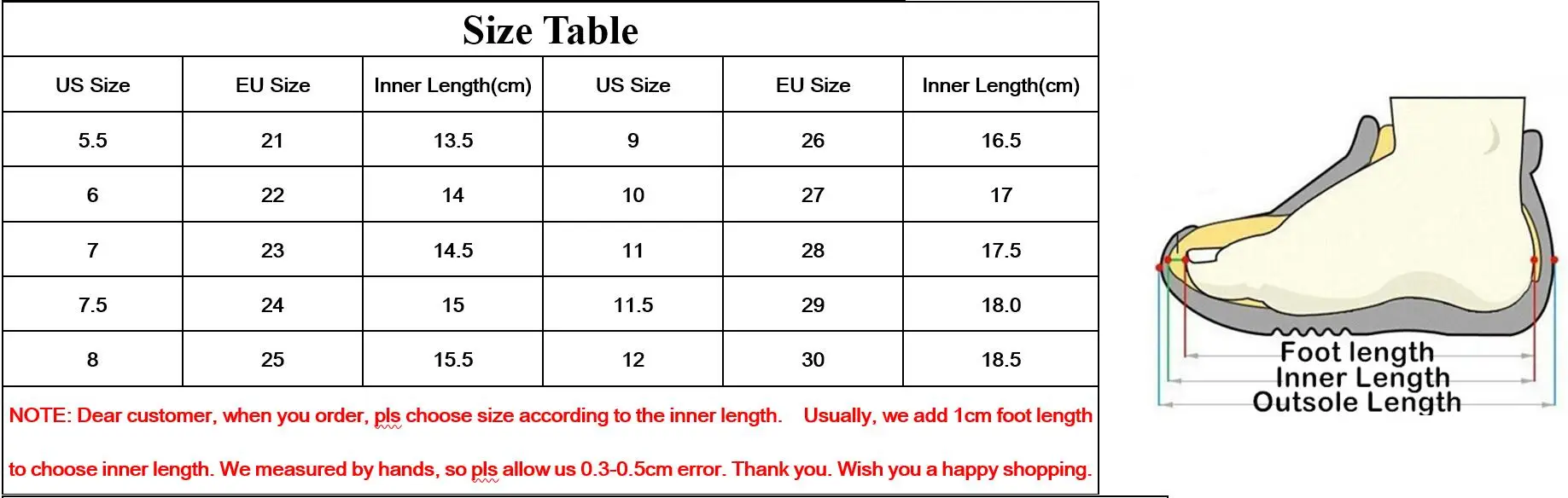 Product Details size table: Dear friends, When you order the children’s shoes, you should according to the Chinese size and internal length. The US size is only convenient for you to do order. The comfortable length is the foot length … Read More