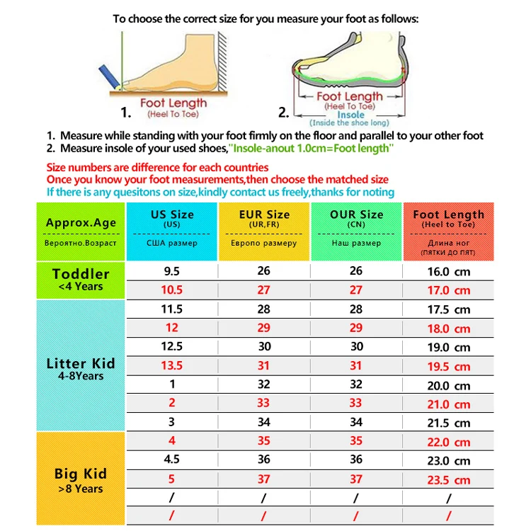 USD 5.11-5.63/pair USD 6.68-9.28/pair USD 5.90-8.63/pair USD 6.30-7.98/pair USD 7.88-10.78/piece USD 5.77-6.45/pair USD 9.68-10.68/pair USD 4.99-7.48/pair 1. Shoes Type:Sneakers Shoes 2.Shoe Width:Medium 3.Gender:Boy&Girl 4.Feature:Fashion Shape 5.material:Rubber, canvas,Plastic 6.Style:EU 7.Length: 13-15.5cm Pls kindly refer to below size chart and choose the … Read More