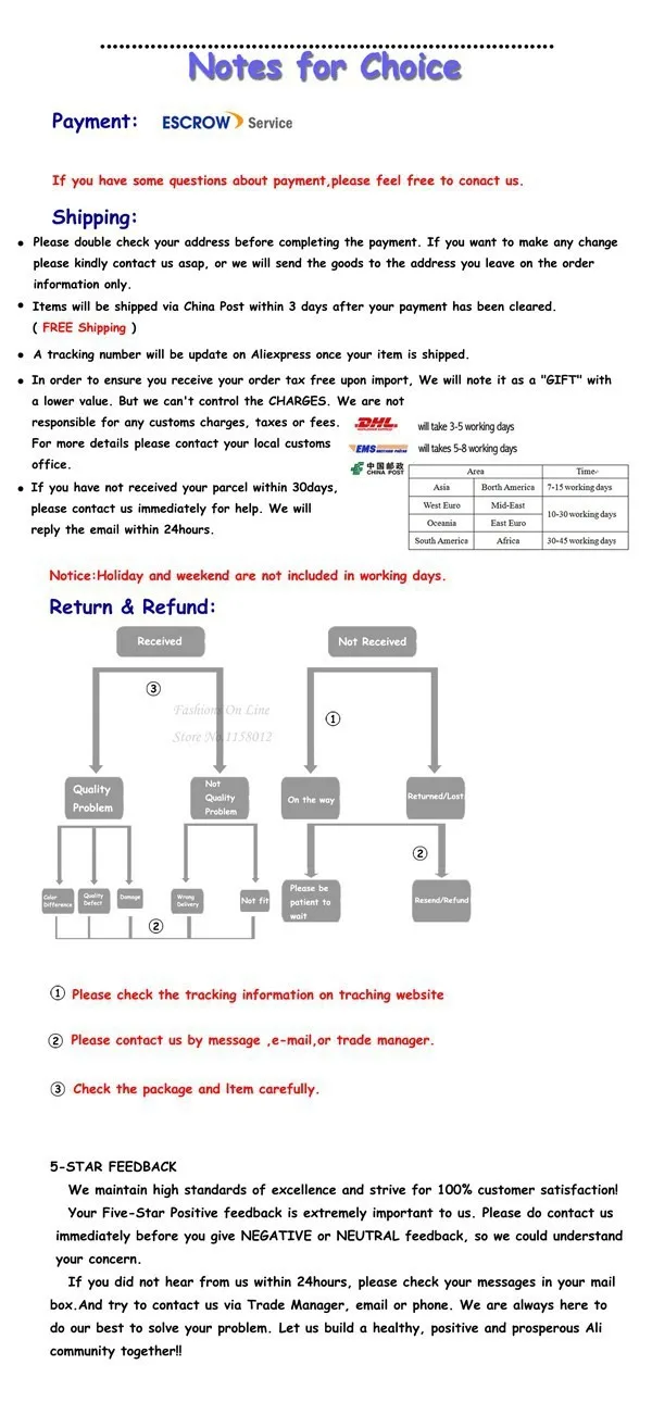 Light shooting and different displays may cause the color of the item in the picture a little different from the real thing. The measurement allowed error is +/- 1-3cm.