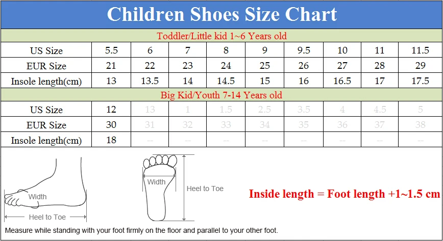 Before you buy this shoes, please measure you baby feet long. 1 inch =2.54 cm