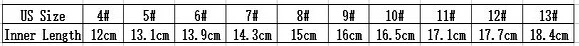 USD 12.59-15.50/pair USD 10.69-16.05/pair USD 15.61-17.74/pair USD 15.21-16.53/pair USD 12.22-14.93/pair USD 16.18-18.92/pair USD 15.66-17.91/pair USD 14.04-16.44/pair Please notice that the size above is inner length. And there maybe 0-1cm error due to the measure by hand. The size you need=length … Read More