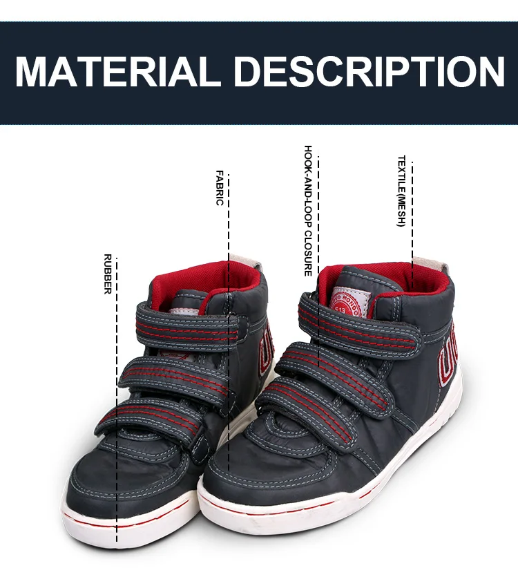 Features: 1.Oxford cloth provides breathability and flexibility 2.Map pattern rubber outsole offers travelling elements 3.Mid-cut design with three hook-and-loop straps offer flexiable wearing.