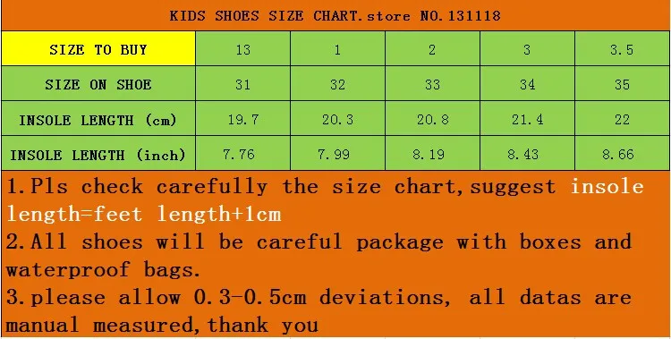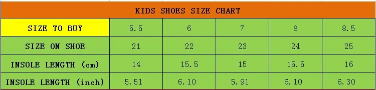 Child size reference table: US Size EUR Size Inner Length(cm) 6.5 22 13.5 cm 7 23 14.0 cm 7.5 24 14.7 cm 8 25 15.2 cm 9 26 15.8 cm 10 27 16.4 cm Note :please allow 0.3cm error due … Read More