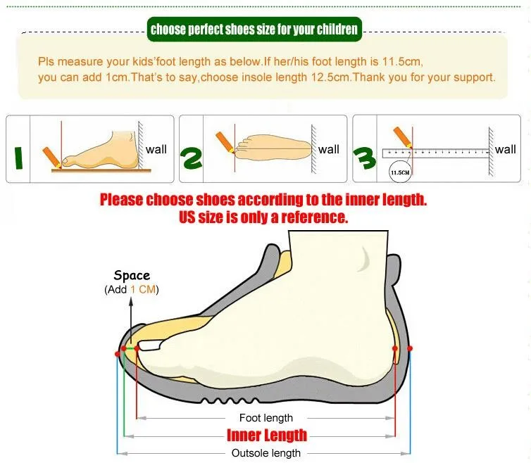 - Feet length+0.5/1cm=insole length(if baby feet are thin,please +0.5cm,if baby feet are fat,please +1cm