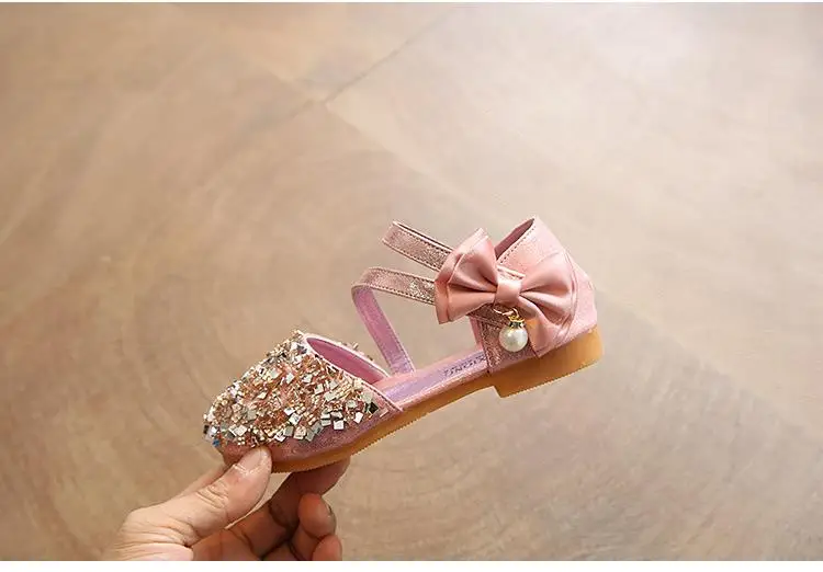 Girls spring summer sandals kids 2017 han edition girls princess rhinestone shoes bright cute bowknot children’s baby shoes 006