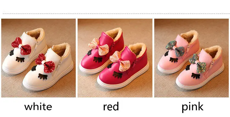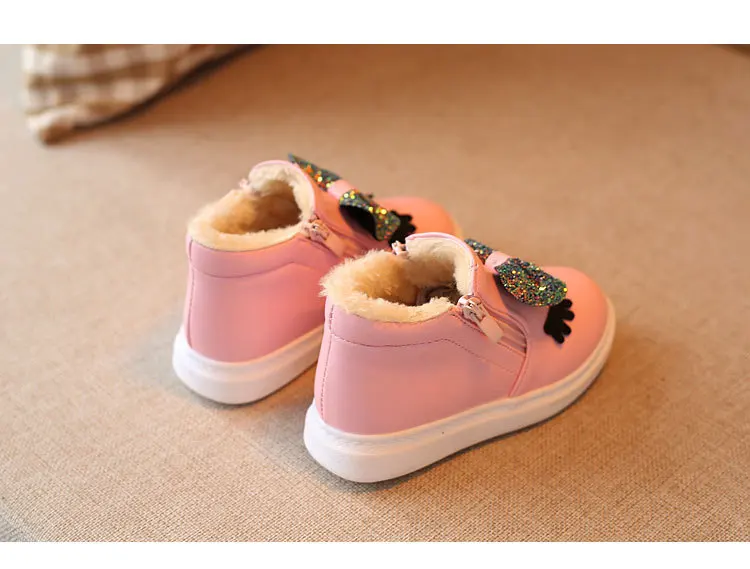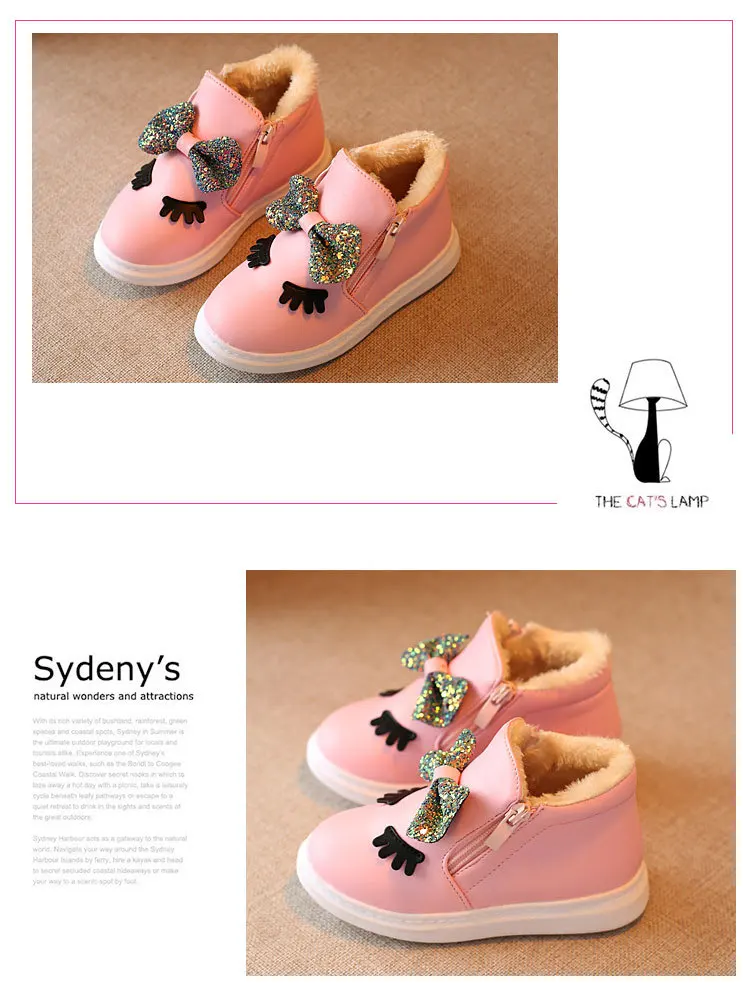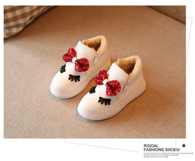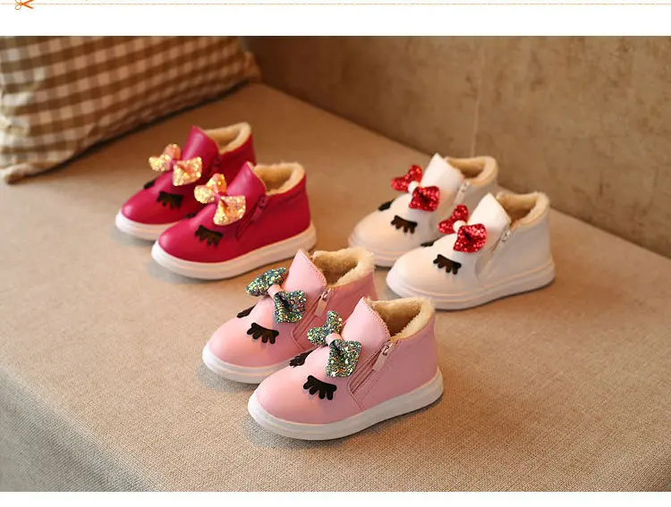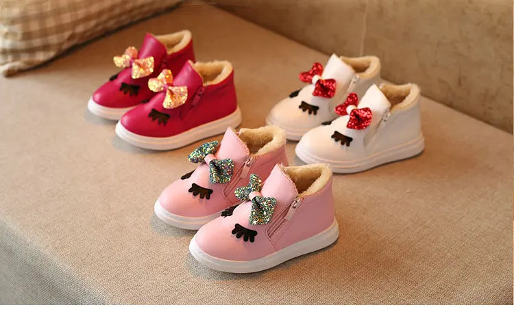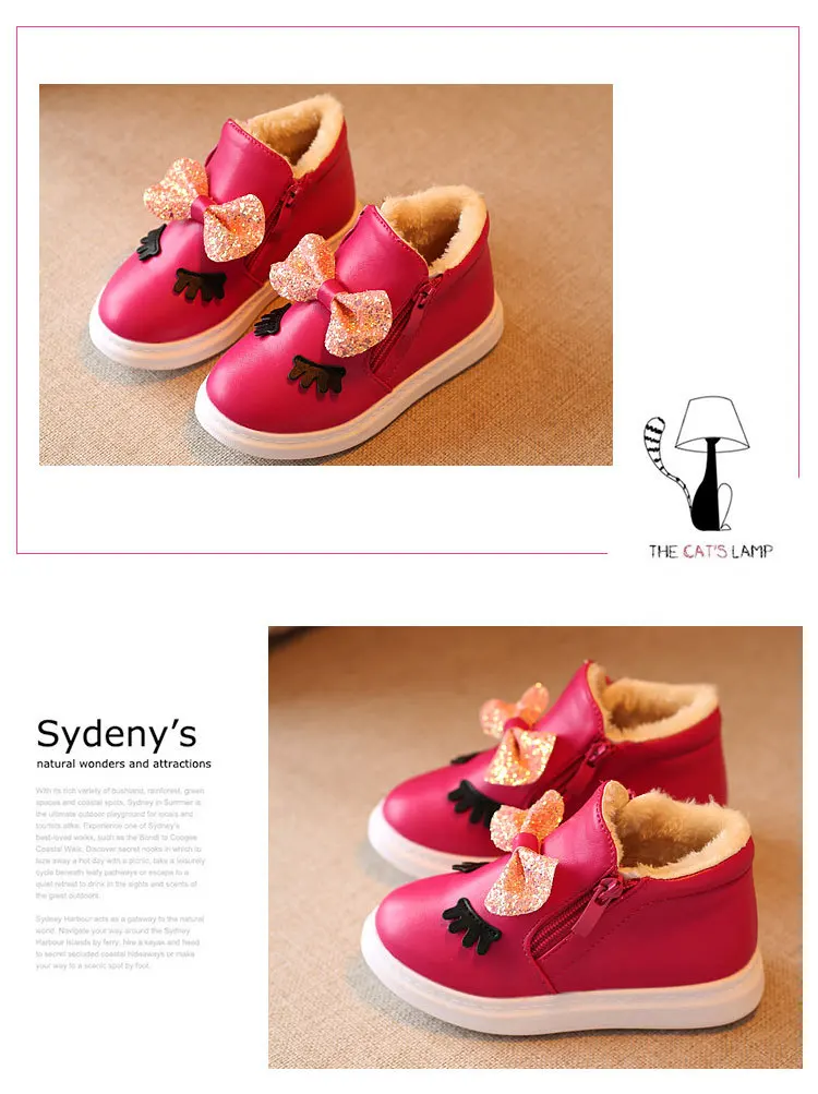 2017 Fashion New Winter Warm Children Boots For Girls PU Leather Kids Shoes Plush Ankle Martin Girl Felt Snow Boots With Zipper