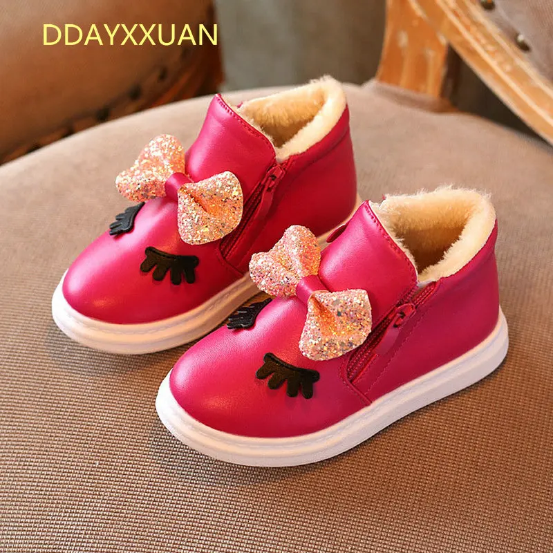 2017 Fashion New Winter Warm Children Boots For Girls PU Leather Kids Shoes Plush Ankle Martin Girl Felt Snow Boots With Zipper