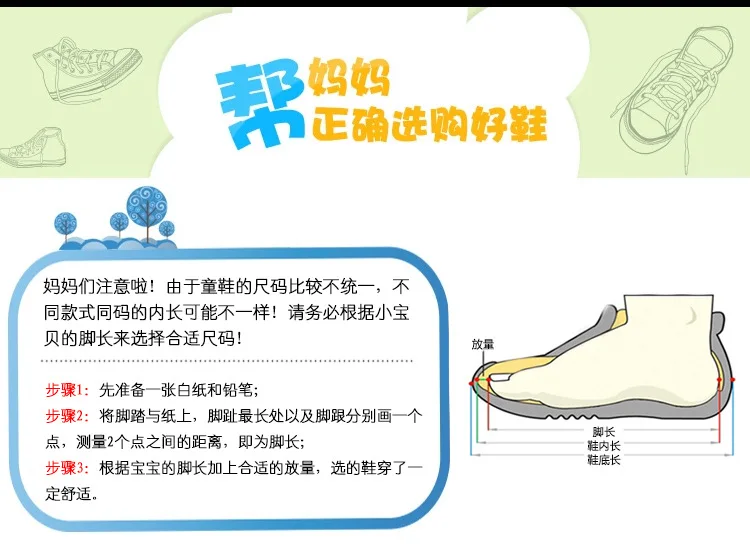 Child size reference table: US Size EUR Size Inner Length(cm) 6.5 22 13.5 cm 7 23 14.0 cm 7.5 24 14.7 cm 8 25 15.2 cm 9 26 15.8 cm 10 27 16.4 cm Note :please allow 0.3cm error due … Read More